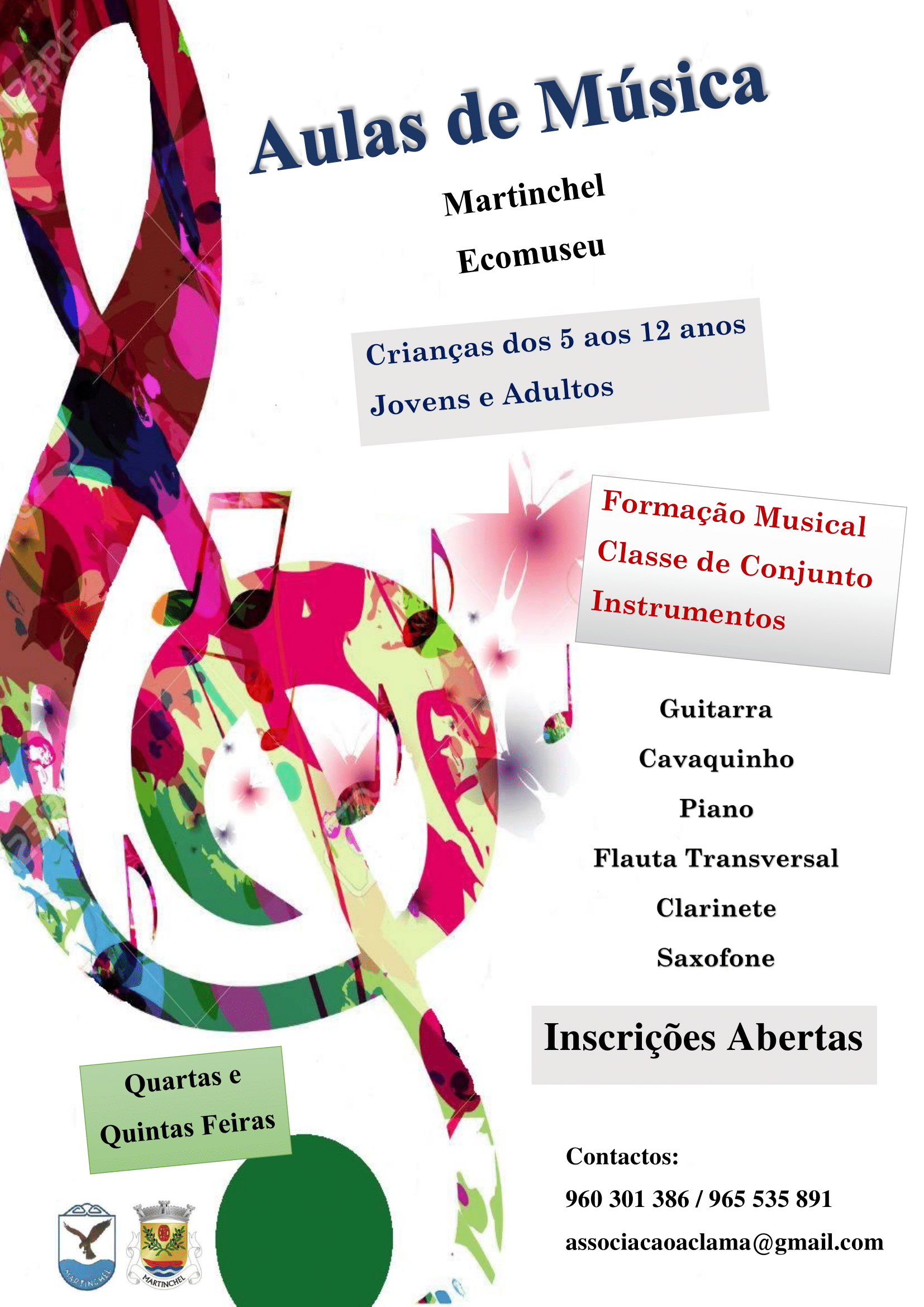 Estão abertas as inscrições para aulas de música na freguesia de Martinchel, no concelho de Abrantes.
