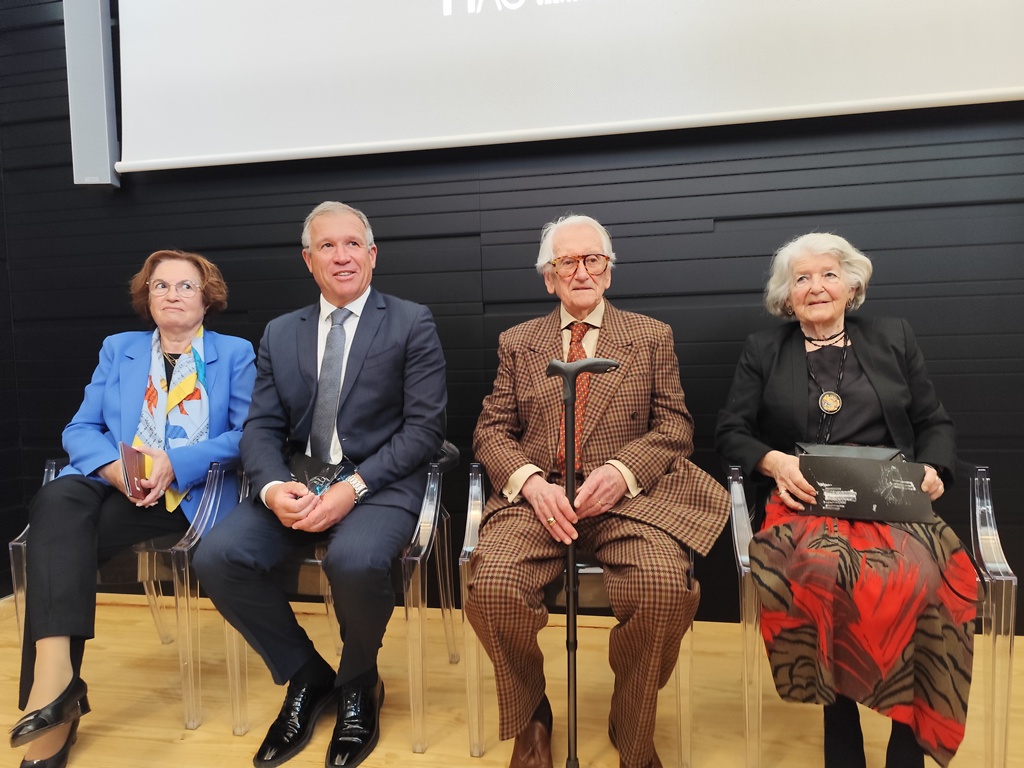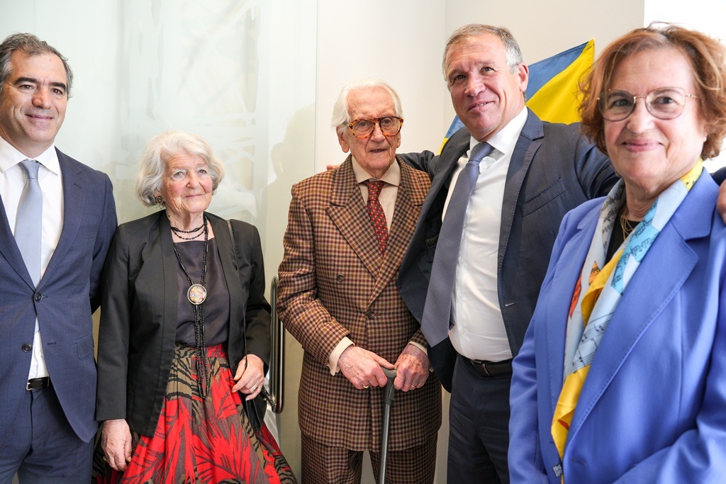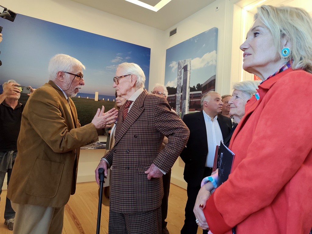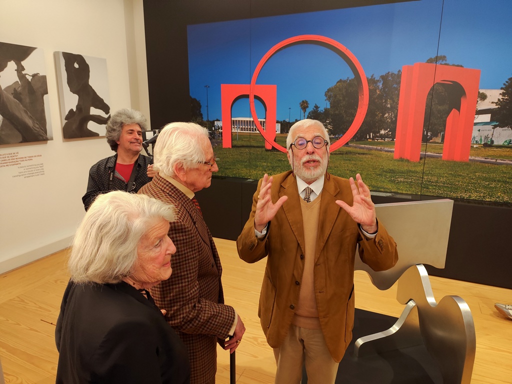 João Charters de Almeida, a mulher, Dona Mariazinha, Manuel Jorge Valamatos, presidente da Câmara de Abrantes, e Isabel Damasceno, presidente da CCDR Centro, descerraram a placa que marca o arranque do Museu de Arte Contemporânea Charters de Almeida. Fica à entrada, do Museu e não na entrada principal do edifício, antes da receção ou loja do Museu.