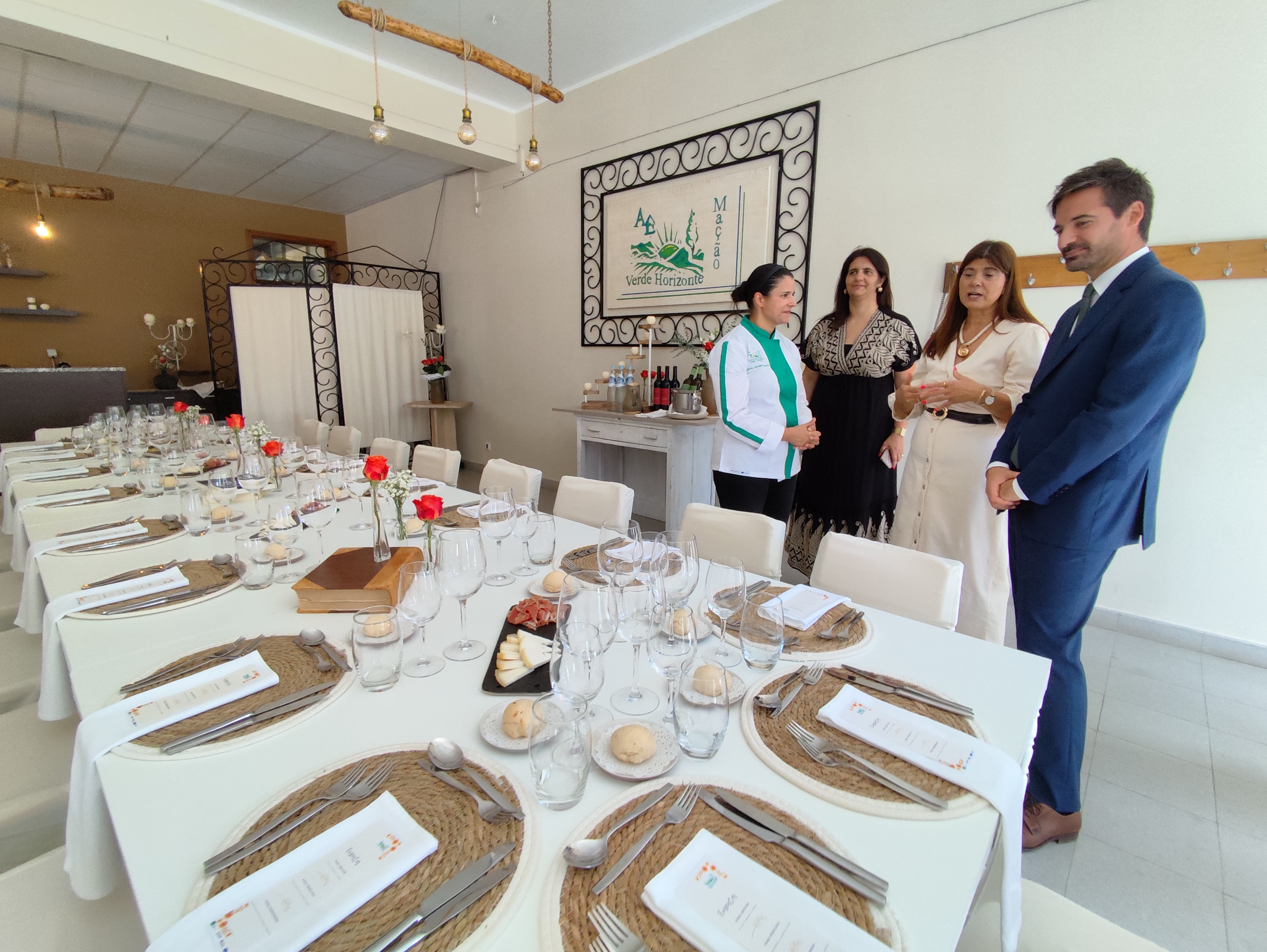 Finalizou a visita com um almoço no restaurante pedagógico da escola serviço pelos alunos do curso de Cozinha e Restauração e com apoio de alunos do curso de Turismo: para iniciar a Corvina, a ameijoa e o almeirão; para principal o frango braseado, os cogumelos e o poejo; para sobremesa a pera, a chave dourada os citrinos e o medronho.