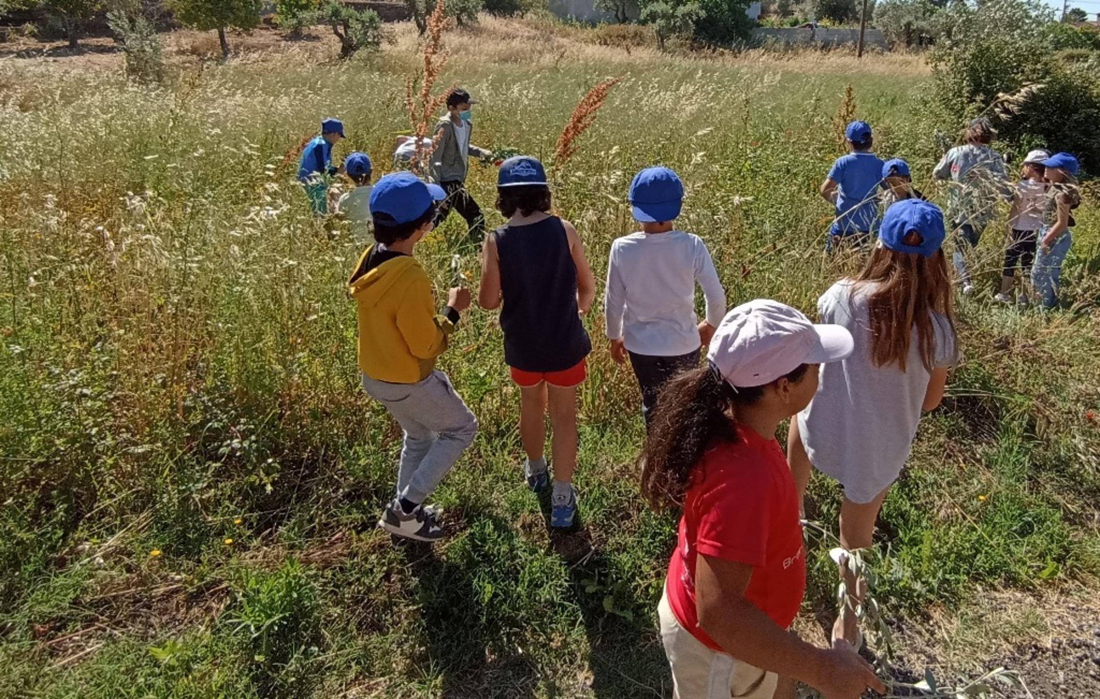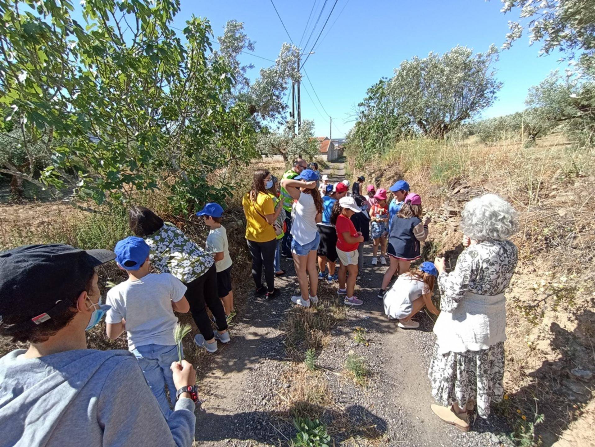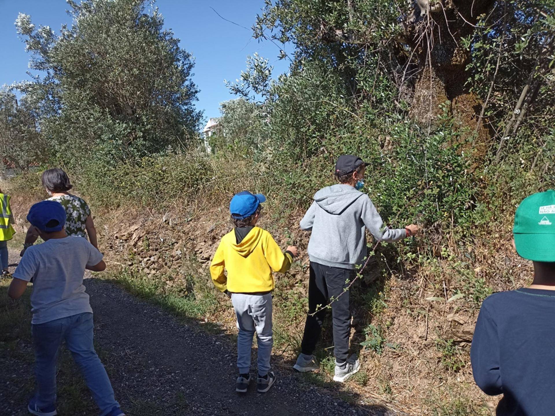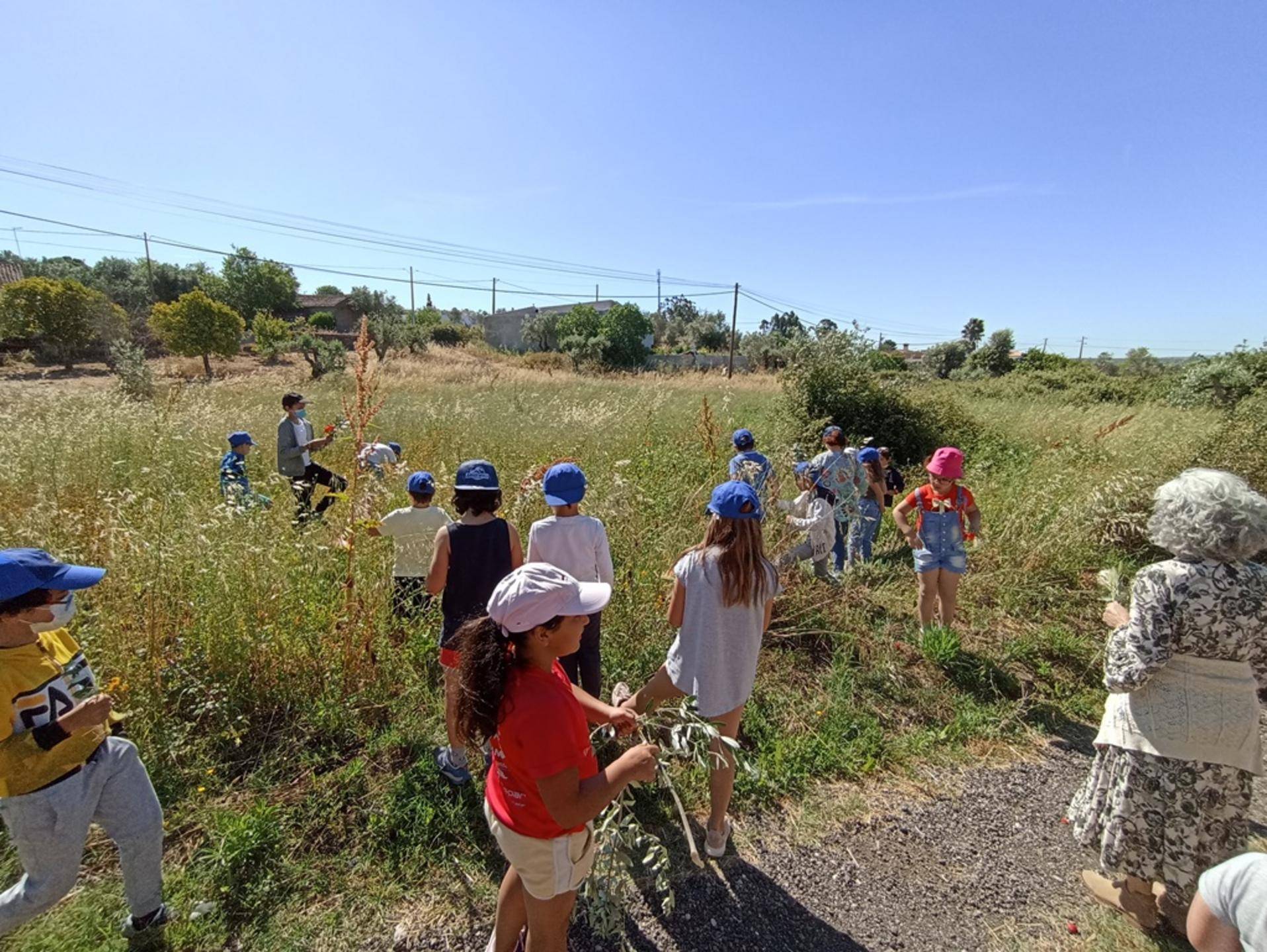 “Não se preocupem que perto da escola há muitas”, diz o professor Paulo Rito que acrescenta logo de seguida “olhe aqui os ramos de Oliveira”. Na azáfama que todos têm para “apanhar” as plantas a professora Isabel chama-os à atenção: “Das oliveiras só apanhamos os ramos de baixo [conhecidos como ramos ladrões]”. E quando um dos miúdos pergunta porquê a professora explica “é que os de cima são os que têm azeitona e nós não queremos estragar a azeitona.” Resposta simples e convincente porque não há mais nenhuma pergunta. Há sim uma corrida para uma zona de videiras bravias, onde todos podem “colher a alegria”.