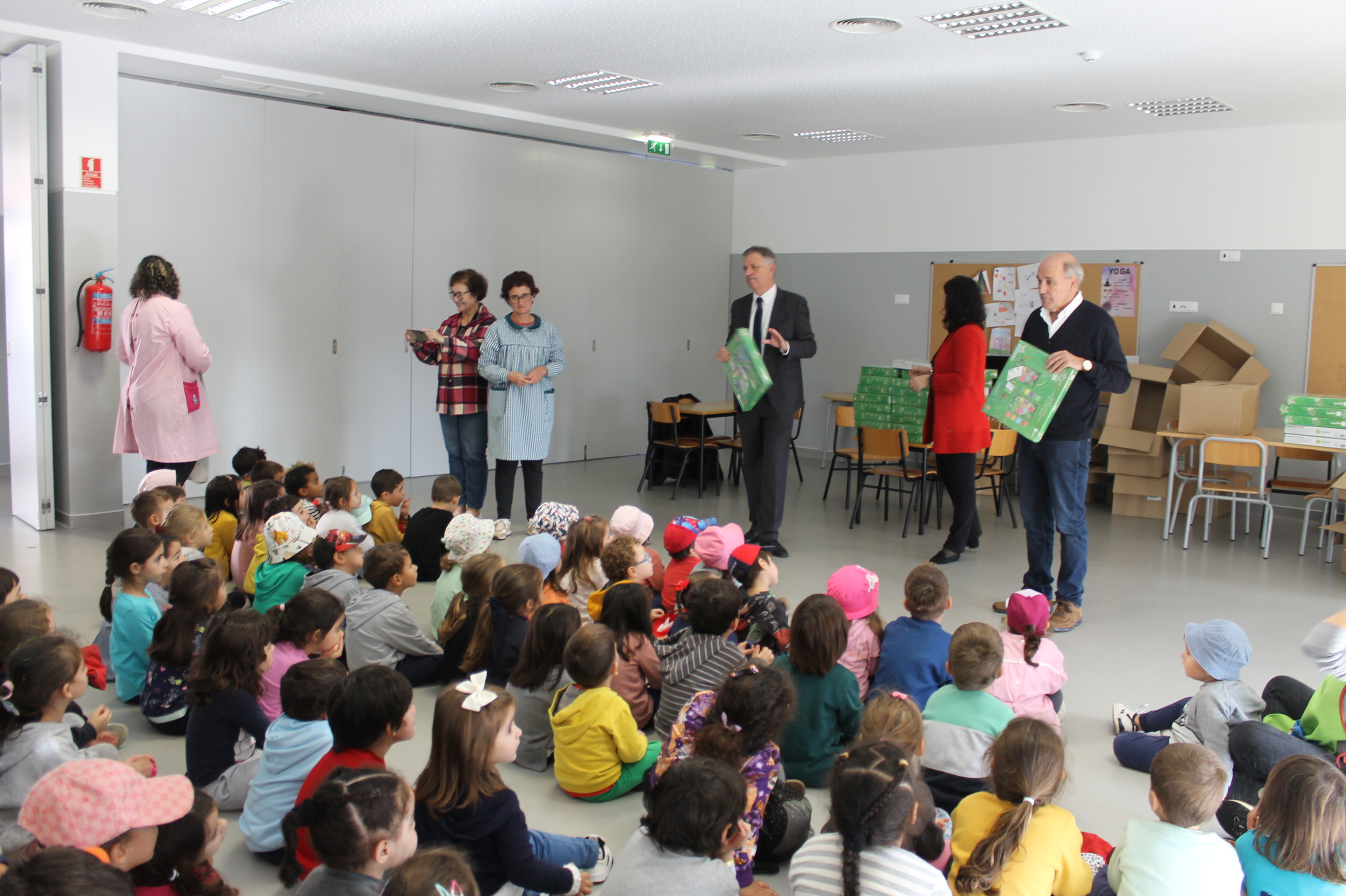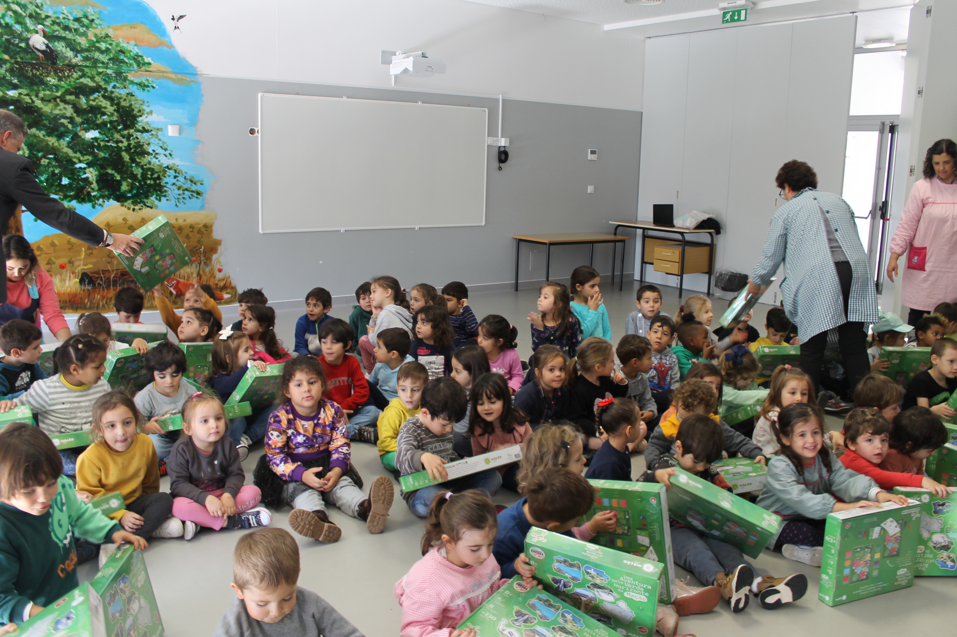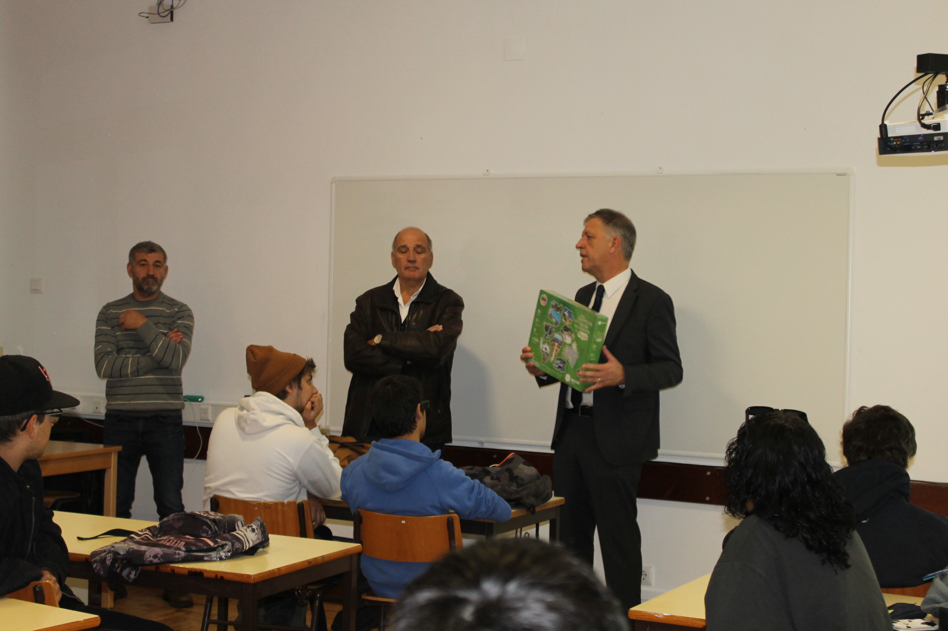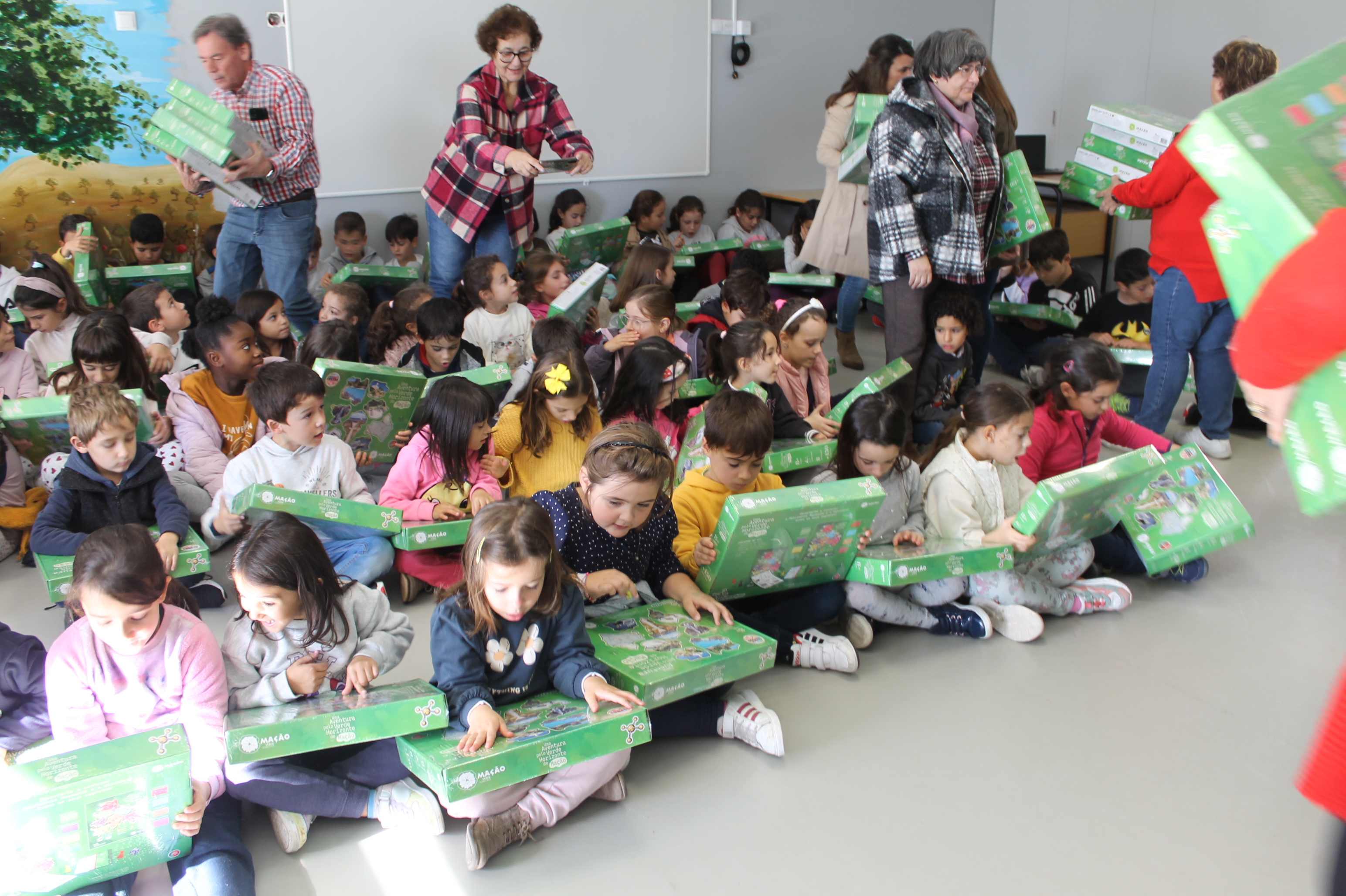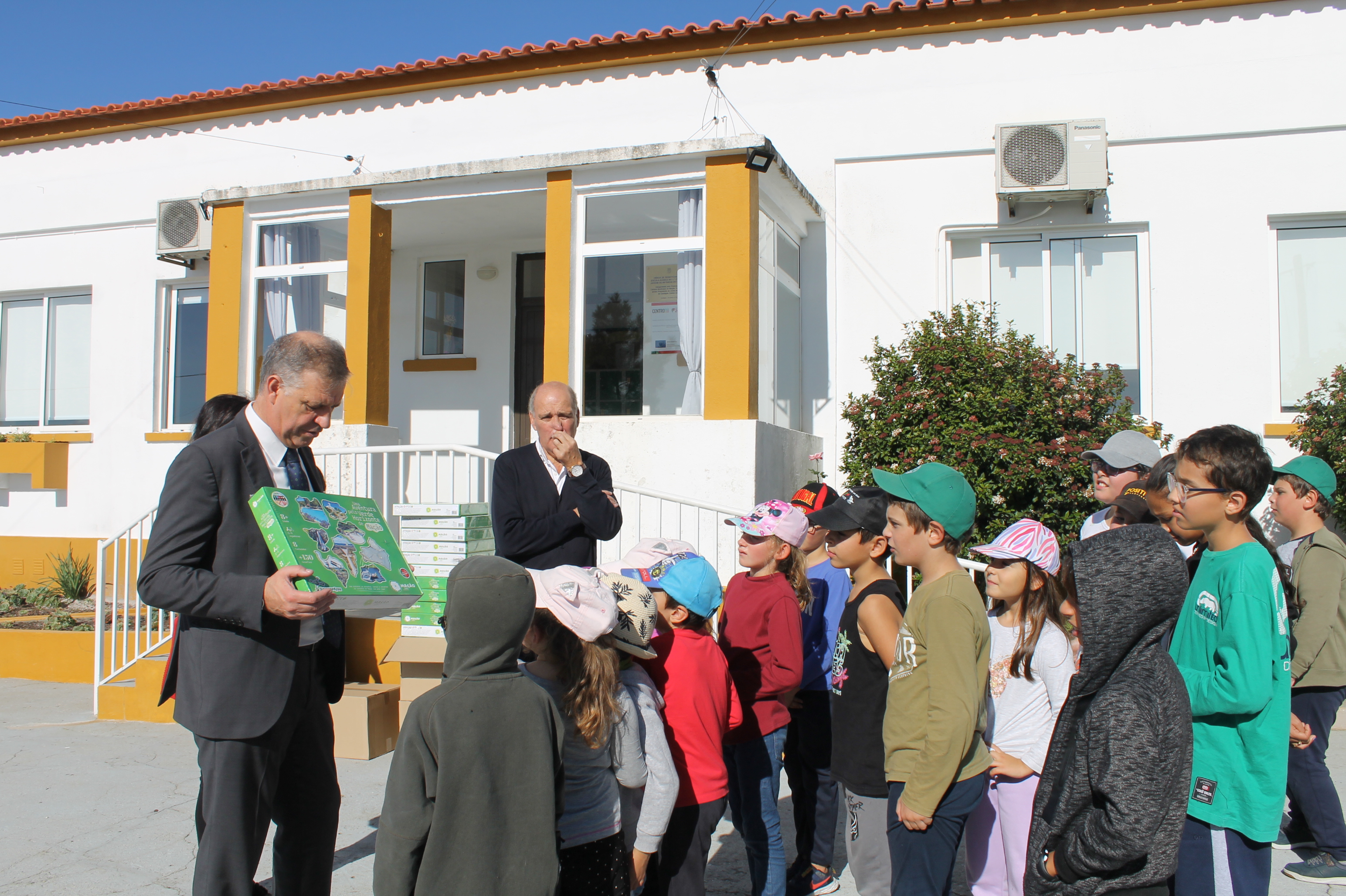 Os estudantes receberam o jogo "Uma Aventura pelo Verde Horizonte de Mação" esta manhã pelas mãos do presidente da Câmara Municipal, Vasco Estrela, acompanhado pelo vice-presidente António Louro e pela vereadora Margarida Lopes, bem como pelo diretor do Agrupamento, José António Almeida.