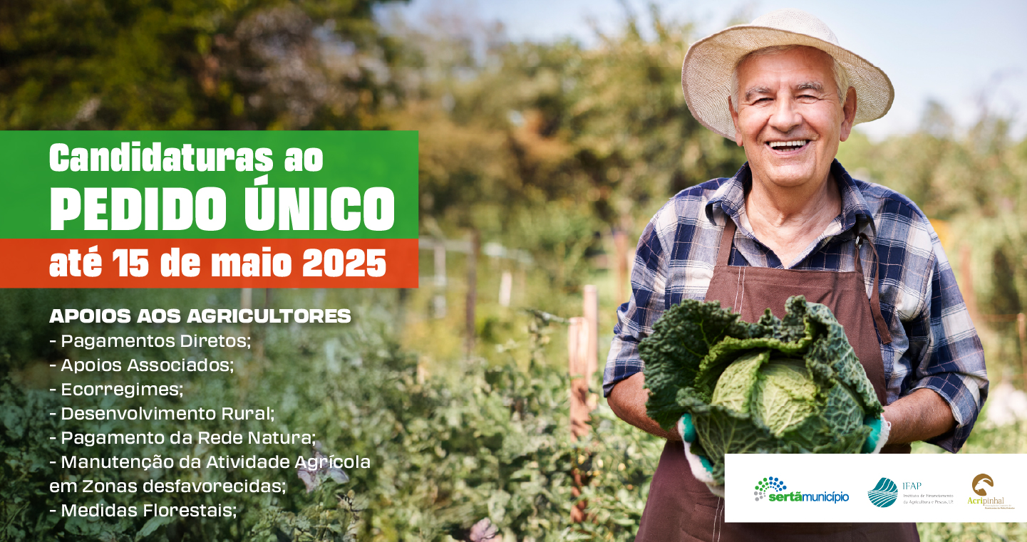 Em 2024, candidataram-se ao Pedido Único 1458 agricultores, mantendo a tendência de crescimento dos últimos anos. Cientes que este apoio pode ser solicitado por mais agricultores, a Acripinhal dispõe-se a apoiar os munícipes e agricultores que tenham interesse nesta candidatura. Para o efeito, os agricultores interessados devem contactar esta associação através do telefone 274 603 077, telemóveis 962 416 871 e 968 940 679 ou pelo e-mail acripinhal@mail.telepac.pt.