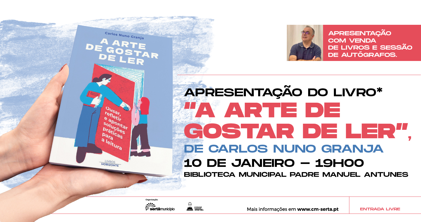 A Biblioteca Municipal Padre Manuel Antunes vai acolher a apresentação do livro “A Arte de Gostar de Ler”, no próximo dia 10 de janeiro, às 19 horas. Nesta obra, Carlos Nuno Granja relata a sua experiência enquanto leitor compulsivo a quem a vida concedeu o privilégio de se poder dedicar a diferentes atividades relacionadas com o universo dos livros.