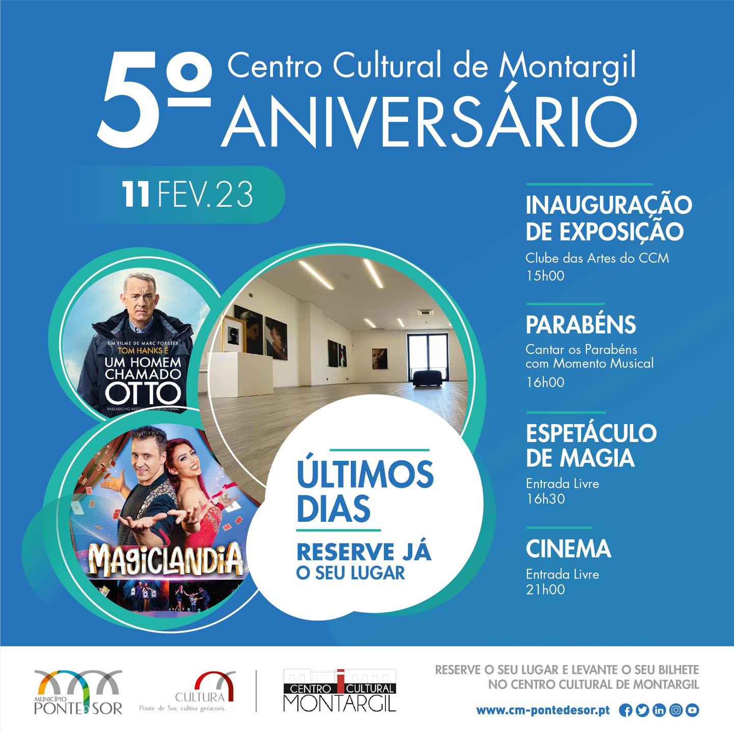 O Centro Cultural de Montargil assinala este sábado, dia 11 de fevereiro, o seu 5.º aniversário, com atividades para todos os públicos, desde as crianças aos adultos, num dia recheado de cultura e momentos lúdicos.