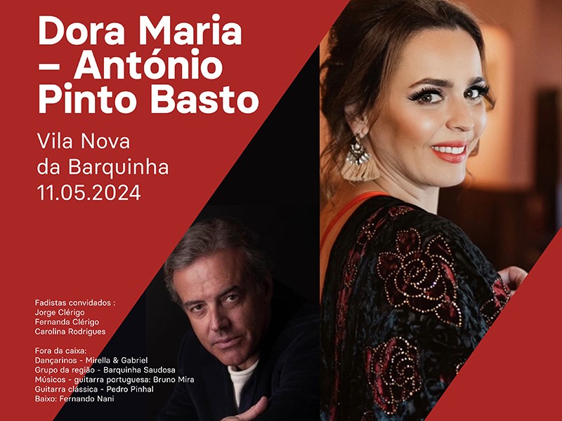 A Fadista anfitriã Dora Maria será acompanhada pelo consagrado António Pinto Basto, na primeira data (11 maio), às 21h30. Esta noite terá como fadistas convidados Jorge Clérigo, Fernanda Clérigo e Carolina Rodrigues, os dançarinos Mirella & Gabriel e o Grupo de Cantares Barquinha Saudosa. O fado será acompanhado pelos músicos Bruno Mira (guitarra portuguesa), Pedro Pinhal (guitarra clássica) e Fernando Nani (baixo).