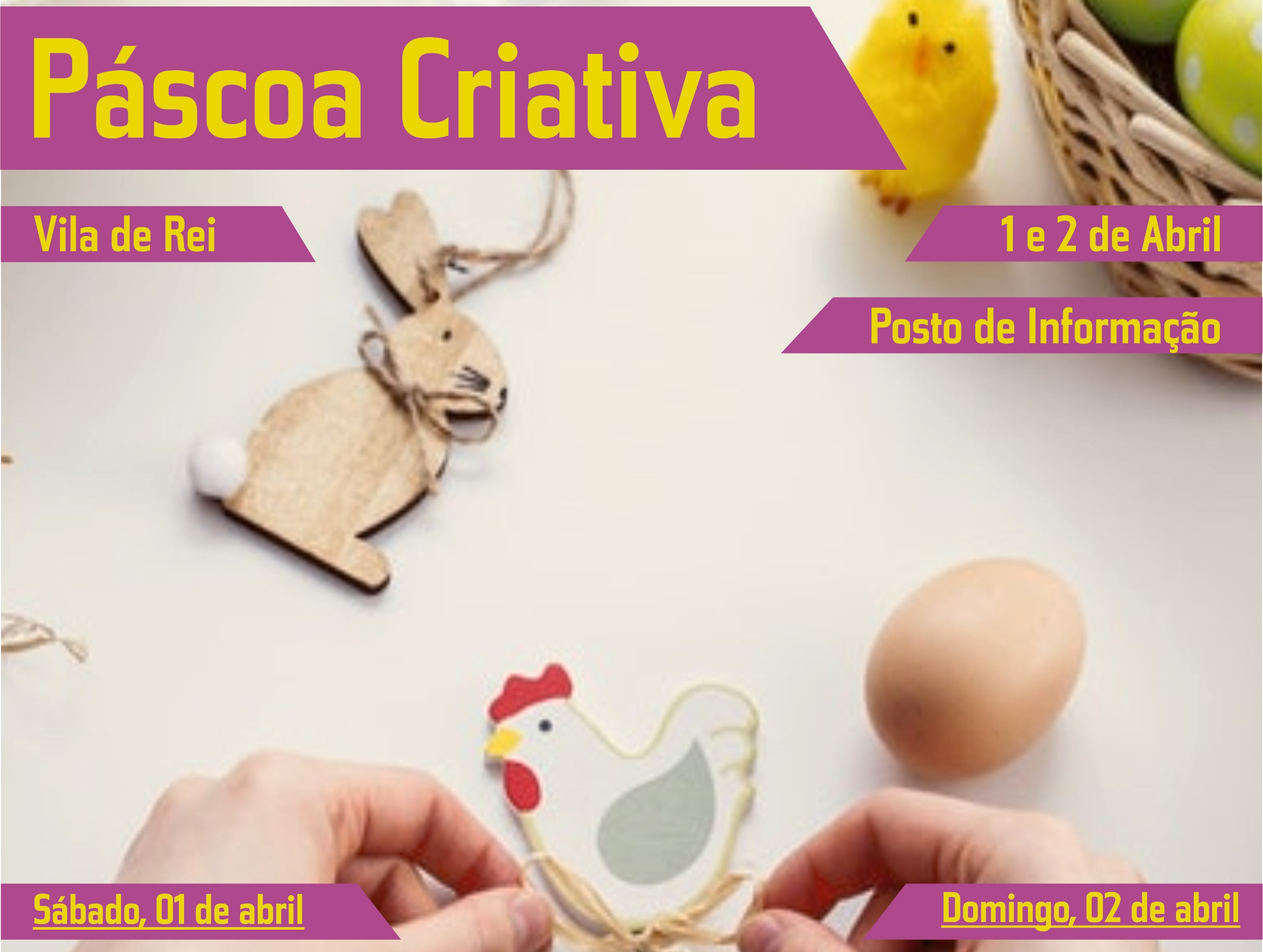 O Posto de Informação de Vila de Rei vai receber, nos dias 1 e 2 de abril, o Ciclo de Workshops ‘Páscoa Criativa’, dinamizado por artesãos do Concelho, numa iniciativa organizada pelo Município Vilarregense e que pretende assinalar esta época festiva.
