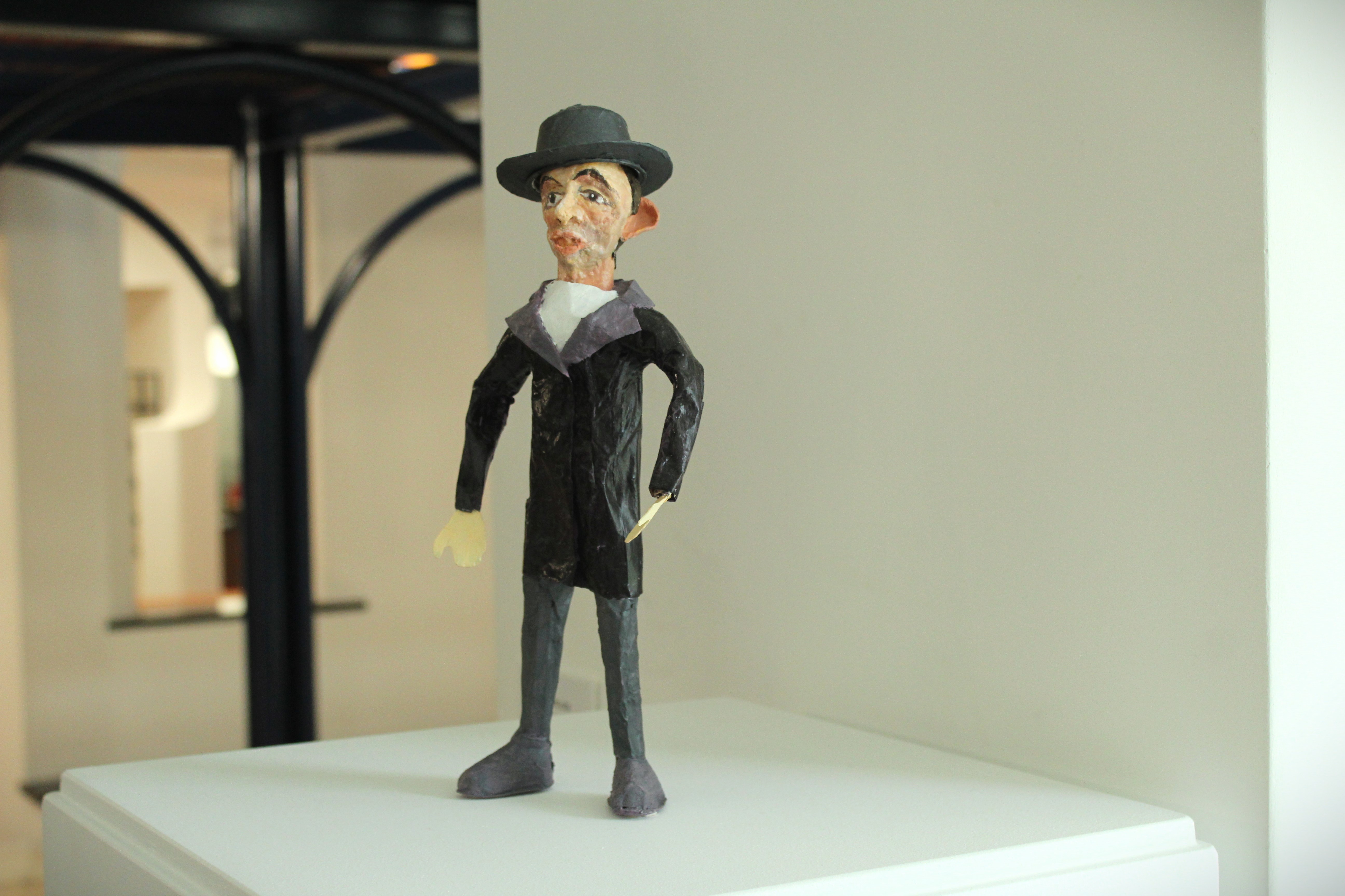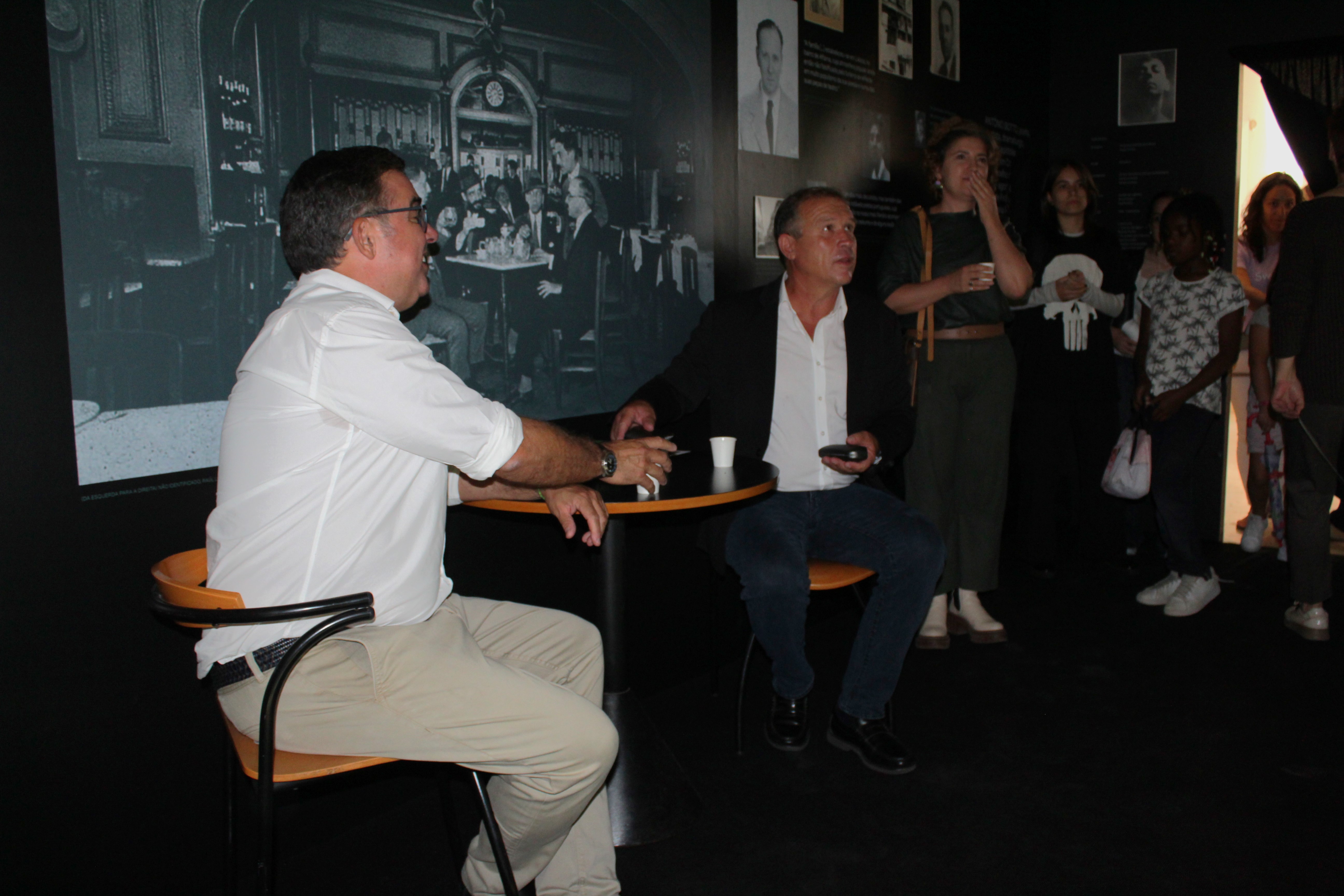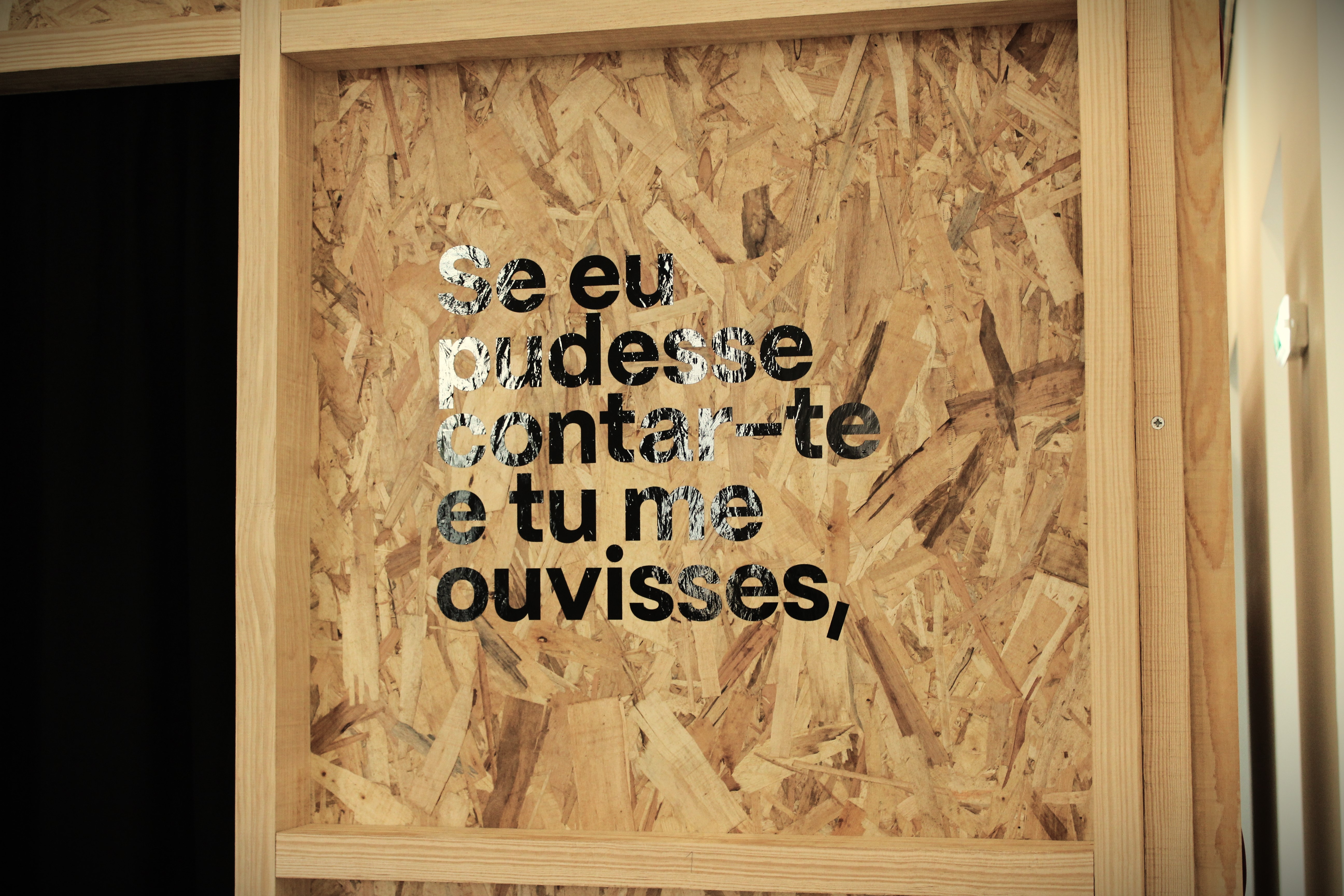 Portanto, ao entrar nesta “caixa” que tem uma estrutura de madeira, o espetador encontra-se com uma mesa de café antiga. A pessoa que está a fazer a visita pode sentar-se e apreciar as várias imagens do poeta ao longo dos anos, coladas num fundo preto que destaca as cores brancas das imagens antigas, assim como, ouvir de fundo as vozes que proclamam os poemas de António Botto. Vozes que, segundo revelou Paula Dias, foram interpretadas por vários artistas, da mesma forma que algumas das obras que se encontram na exposição foram, também, feitas por colaborações de artistas visuais.