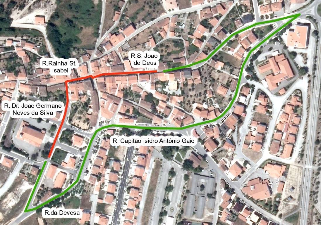 O corte de estrada ao trânsito estará ativo nestas três ruas entre as 21h00 e as 22h00. Como alternativa, os veículos deverão utilizar a Rua Capitão Isidro António Gaio e a Rua largo da Devesa.
