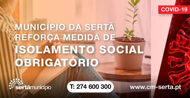 No contexto da pandemia Covid19 e no seguimento de diversas medidas implementadas com o objetivo de prevenir e conter a Covid19, o Município da Sertã reforça a medida de isolamento social obrigatório, determinada pela Comissão Distrital de Proteção Civil de Castelo Branco, para aqueles que tenham regressado ao concelho da Sertã vindos de território nacional ou internacional (migrantes e emigrantes). Deverão também informar as autoridades da sua chegada ao Concelho da Sertã. Esta medida tem como objetivo conter e minimizar o risco de propagação da Covid19.