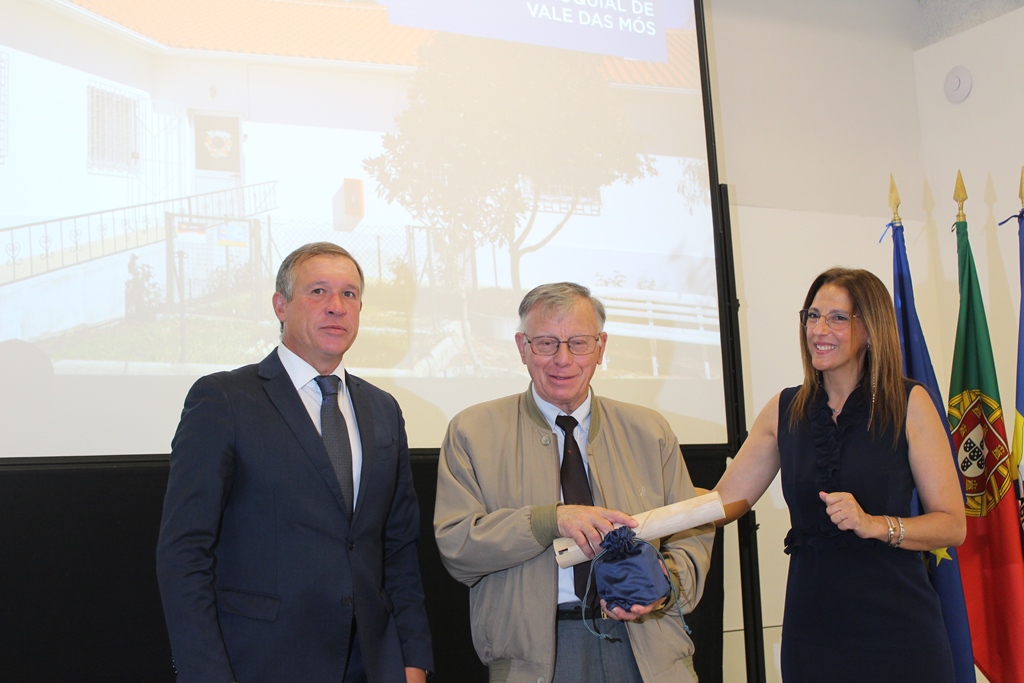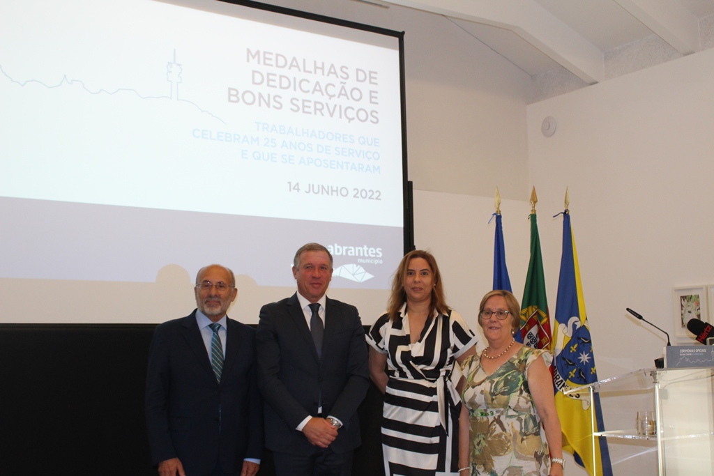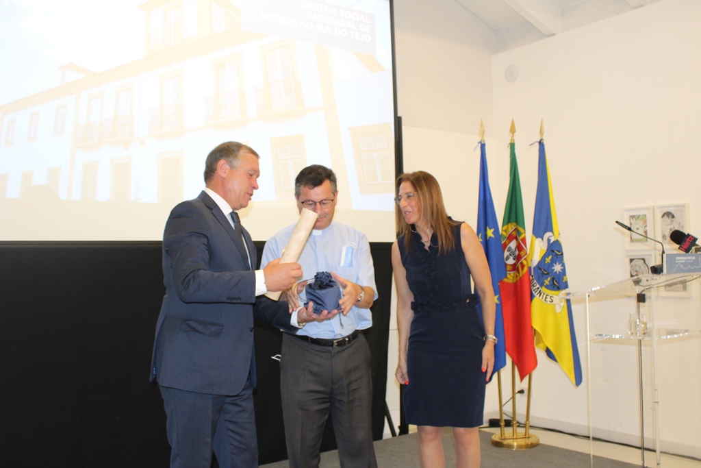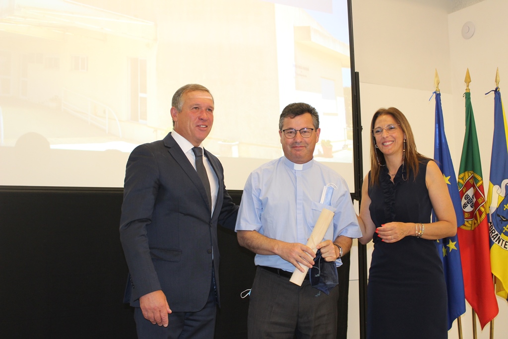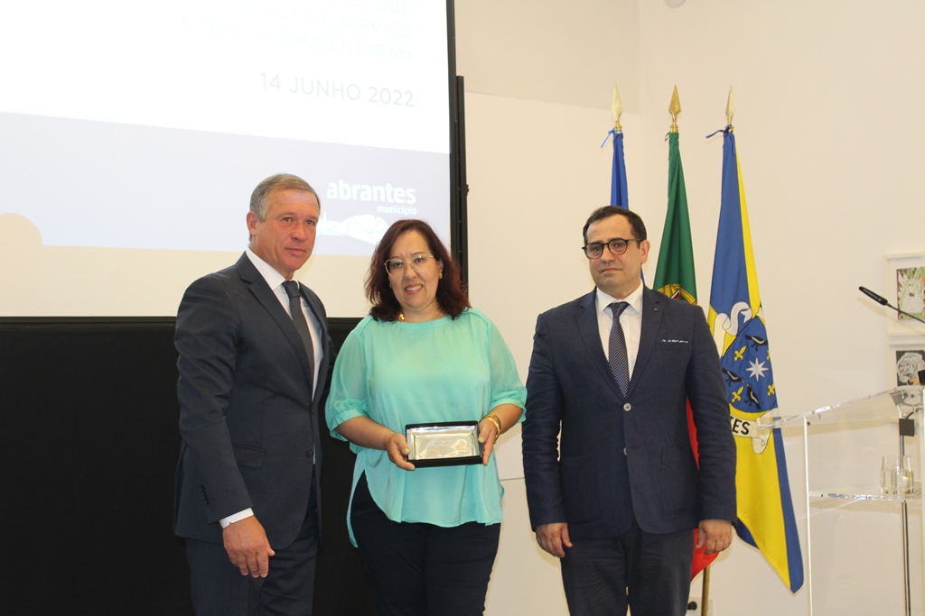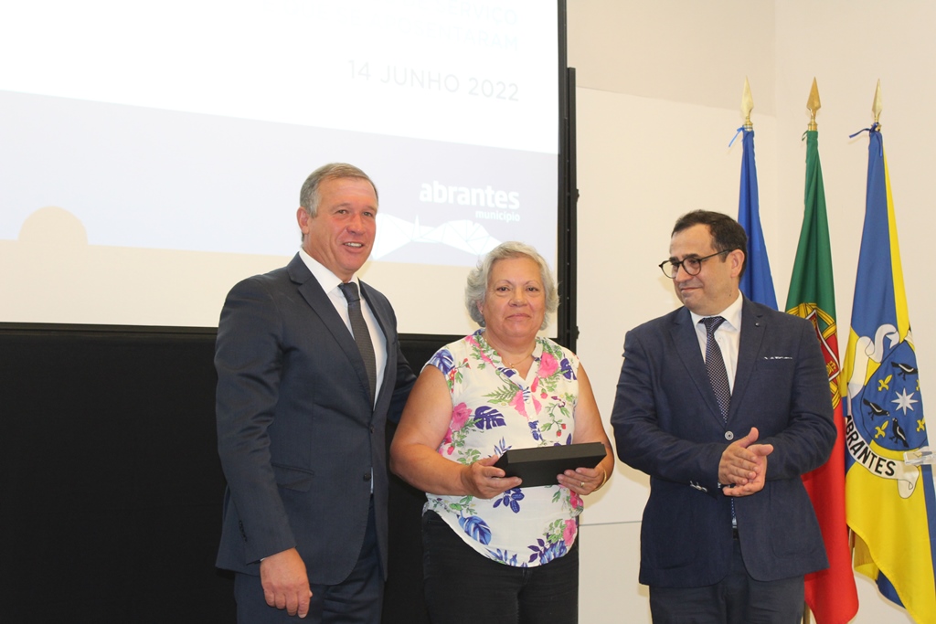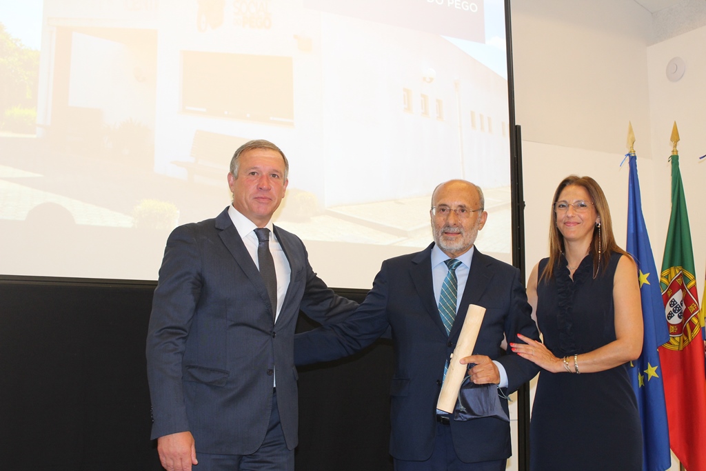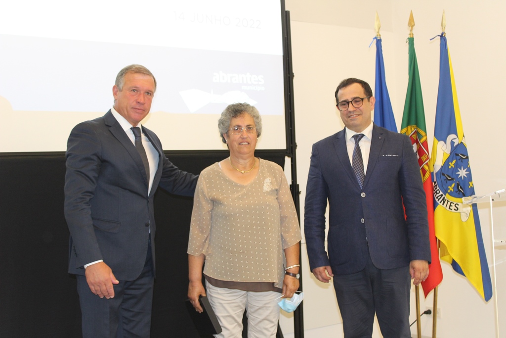 Logo de seguida o presidente da Câmara Municipal de Abrantes, Manuel Jorge Valamatos, e a vereadora com o pelouro da Ação Social, Raquel Olhicas, entregaram a Medalha de Mérito Municipal aos lares e centros de dia do concelho de Abrantes, num total de 16 instituições, “pelo trabalho decisivo que têm desenvolvido a cuidar daqueles que durante tantos anos nos transmitiram os valores e a identidade do que é ser abrantino”.