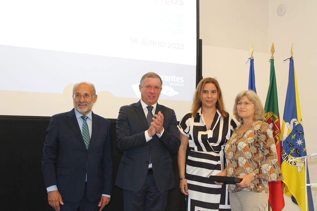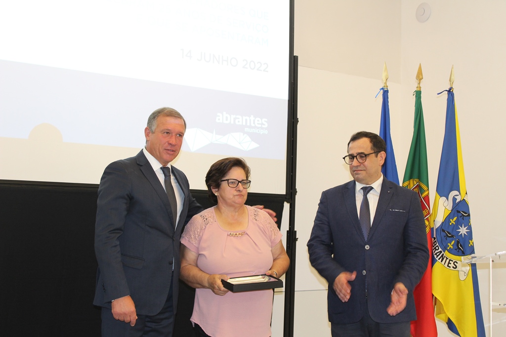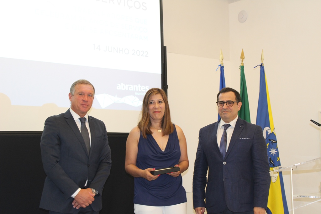 Já no interior do MIAA, numa das salas com peças de arte contemporânea da colehgção Figueiredo Ribeiro seguiu-se a homenagem aos trabalhadores do Município de Abrantes presentes com 25 anos de serviço e também aos que se aposentaram este ano. Foram igualmente agraciados os funcionários com 25 anos ou que se aposentaram do serviço do Agrupamento de Escolas n.º 1 de Abrantes.