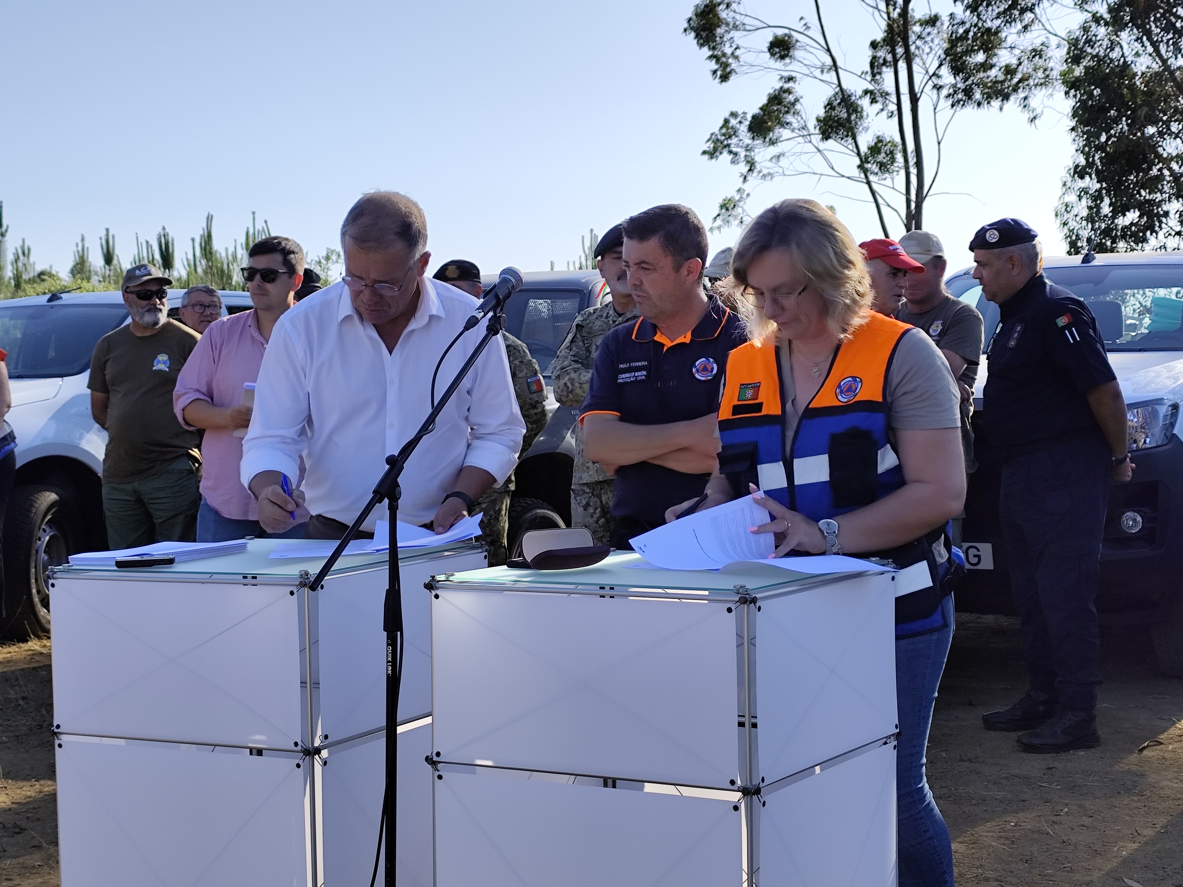Já o presidente da Câmara de Abrantes aproveitou o momento para assinar, com as 11 juntas de freguesia que têm os kits de primeira intervenção, o respetivo protocolo para formalizar o pacote financeiro de apoio de 15 mil euros a cada viatura envolvida.