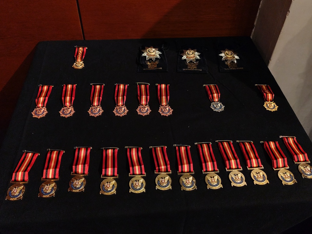 Entre as várias distinções com medalhas de serviço, a Liga dos Bombeiros de Portugal entregou crachás de ouro aos bombeiros: Herculano Soares Lopes, Luís Mano e João Simples Ribeiro.