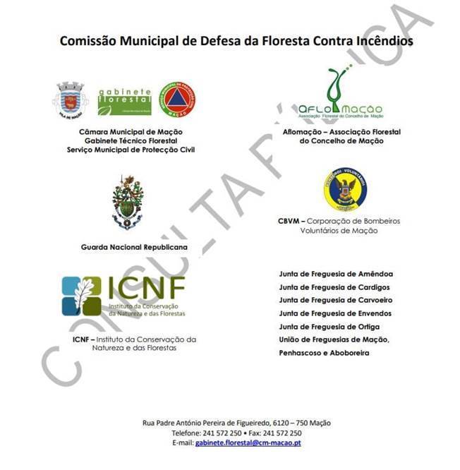 O Plano Municipal de Defesa da Floresta Contra Incêndios do Município de Mação foi objeto de Parecer Prévio da Comissão Municipal de Defesa Contra Incêndios e de Parecer Vinculativo Positivo do Instituto de Conservação da Natureza e Florestas IP.