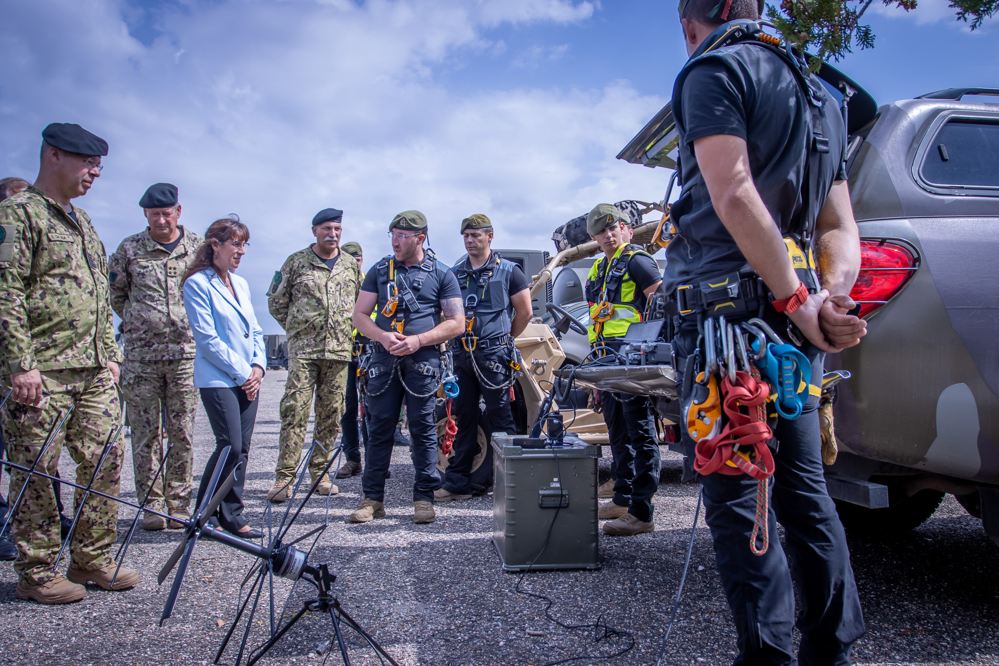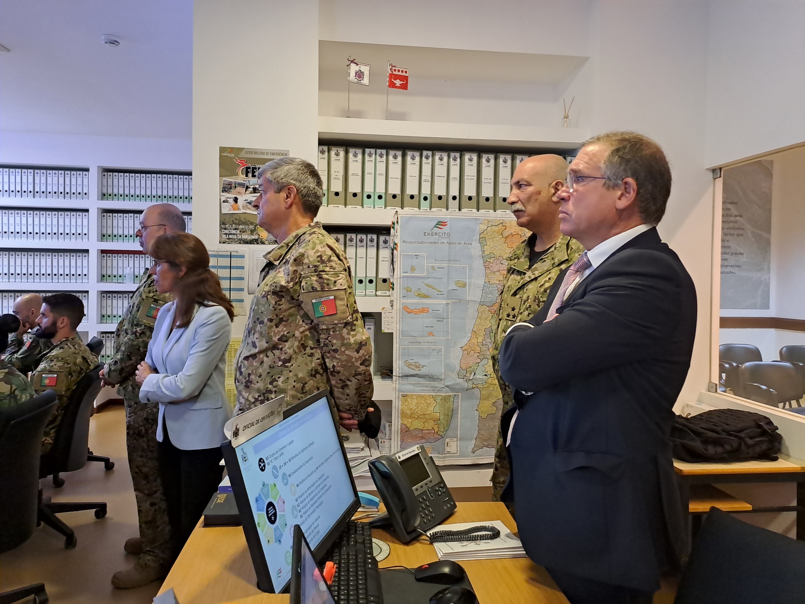 A governante visitou o Centro de Operações de Apoio Militar de Emergência e verificou presencialmente, um a um, todo o dispositivo e capacidades do Exército instaladas para responder a “ameaças cada vez mais complexas”, em cenários “críticos” e que vão para além das “atividades militares tradicionais”, sendo as mesmas compostas por nove valências e 37 módulos, divididos por 32 unidades militares em todo o país, continente e ilhas.