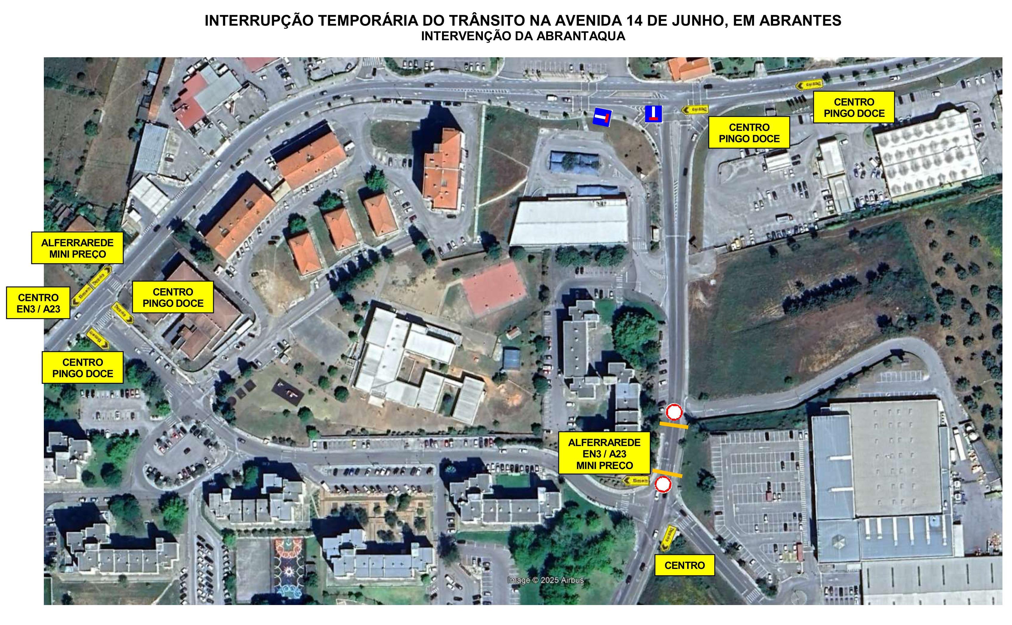A Avenida 14 de junho, em Abrantes, entre o entroncamento com a Rua Cidade de Parthenay e o entroncamento com a Avenida D. João I, mais conhecida como rua do Pingo Doce, vai estar com trânsito congestionado entre os dias 5 e 9 de maio.