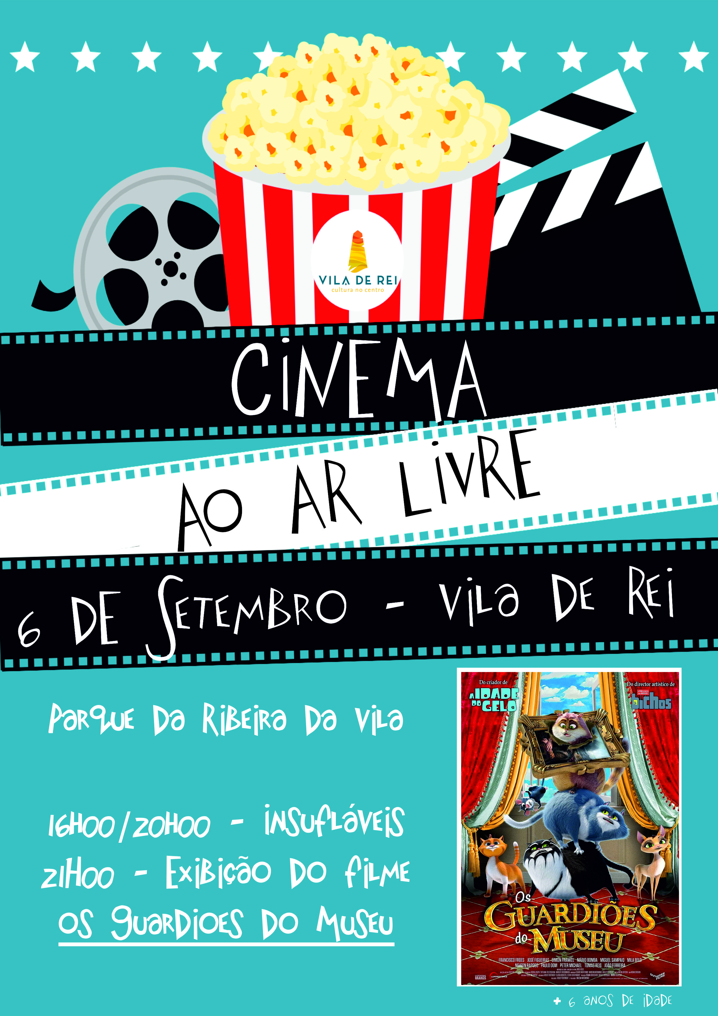 A sessão vai ter lugar pelas 21h00, com a exibição do filme infantil ‘Os Guardiões do Museu’. Antes da exibição do filme, entre as 16h00 e as 20h00, o Município volta a disponibilizar, de forma gratuita, um insuflável para as crianças presentes.