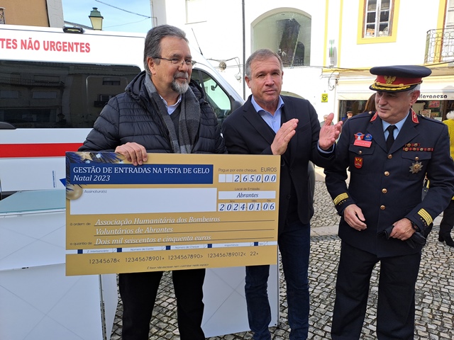 O Município de Abrantes entregou um cheque de 2.650 euros à Associação Humanitária dos Bombeiros Voluntários de Abrantes (AHBVA) que foi o valor apurado nas entradas para a pista de gelo sintético que esteve no período de Natal a funcionar no Jardim da República.