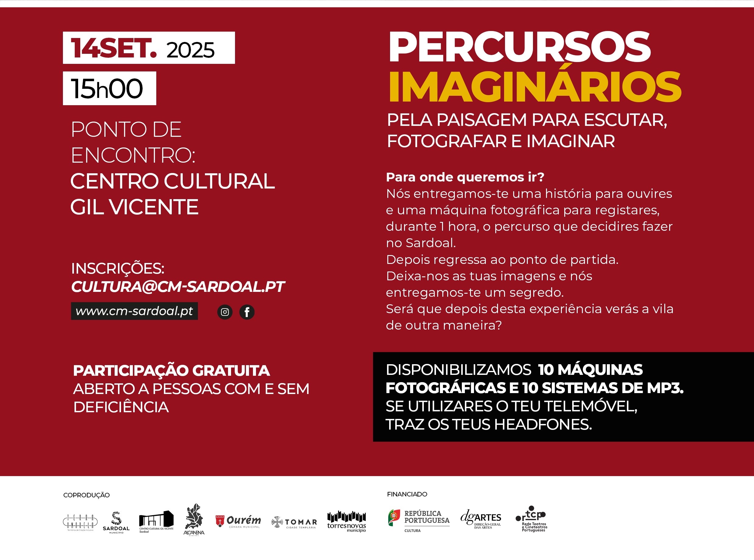 A iniciativa convida os participantes a percorrem a Vila de Sardoal durante uma hora, com um guião em formato de áudio e a registar fotograficamente os locais por onde vão passando. O desafio lançado é “pela paisagem fotografar, escutar e imaginar”, ficando no ar a questão “será que depois desta experiência verás a vila de outra maneira?”