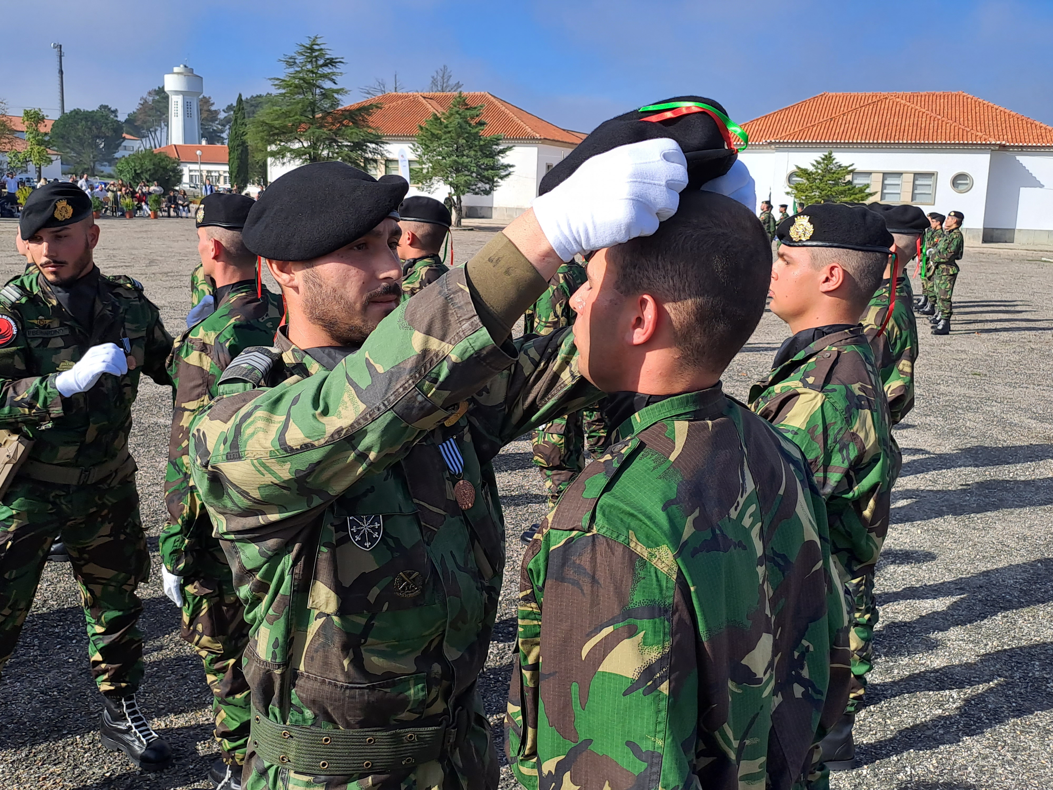 A seguir ao Juramento de bandeira foram chamados os três sodados do curso que tiveram melhor classificação em 3 áreas: mérito escolar, Edmilson Sanches (18,44); mérito pessoal Alexande Pedro (16); e desembaraço físico Bernardo Ferreira (14,90). Os formadores dos, agora soldados-recruta colocaram a boina em substituição do quico. A boina, com insígnia à esquerda, surgiu em 1963 com os caçadores especiais, tendo depois sido generalizada pelo exército. É um elemento integrador do cidadão na comunidade militar.