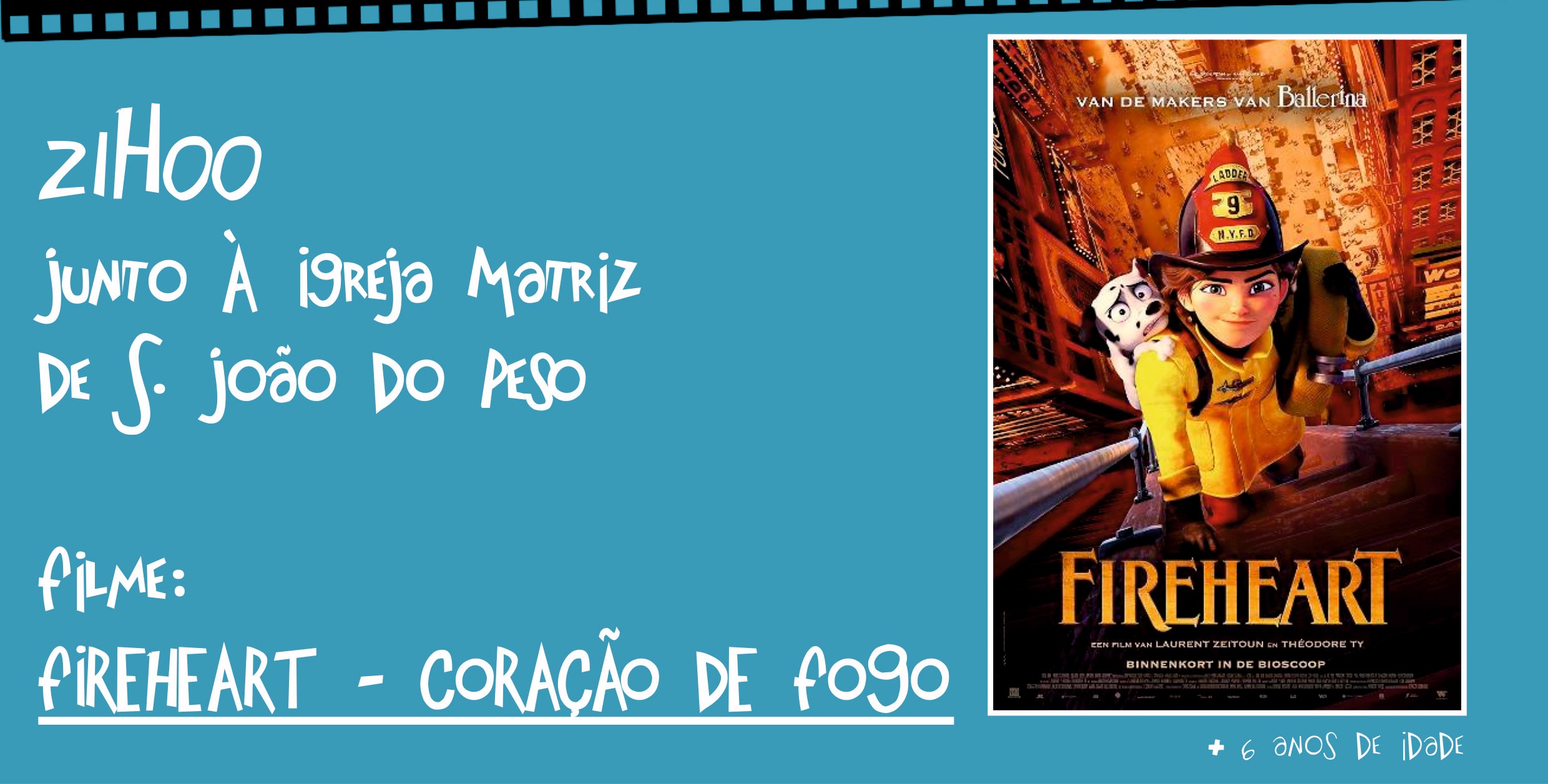 Junto à Igreja Matriz de São João do Peso, às 21h00, estará em exibição o filme infantil 'Fireheart'- Coração de Fogo. Este filme conta a história de “Georgia que, desde criança, sonha tornar-se a primeira bombeira de Nova Iorque. Infelizmente, esta atividade estava vedada às mulheres em 1930. Mas quando os bombeiros da cidade começam a desaparecer em incêndios misteriosos, Georgia vê a sua oportunidade de ouro. Disfarça-se de 'Joe' e junta-se à equipa de bombeiros encarregues de deter o incendiário e resolver o mistério”.