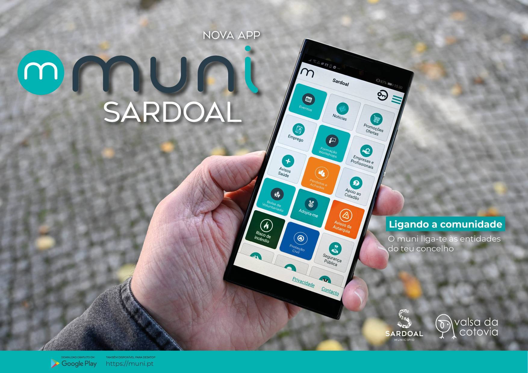 A “Muni” pode ser descarregada gratuitamente na Google Play, estando disponível em ambiente de telemóvel, android e desktop. Para mais informações pode consultar o Portal do Município, em www.cm-sardoal.pt, ou o site da aplicação, em www.muni.pt/municipios/.