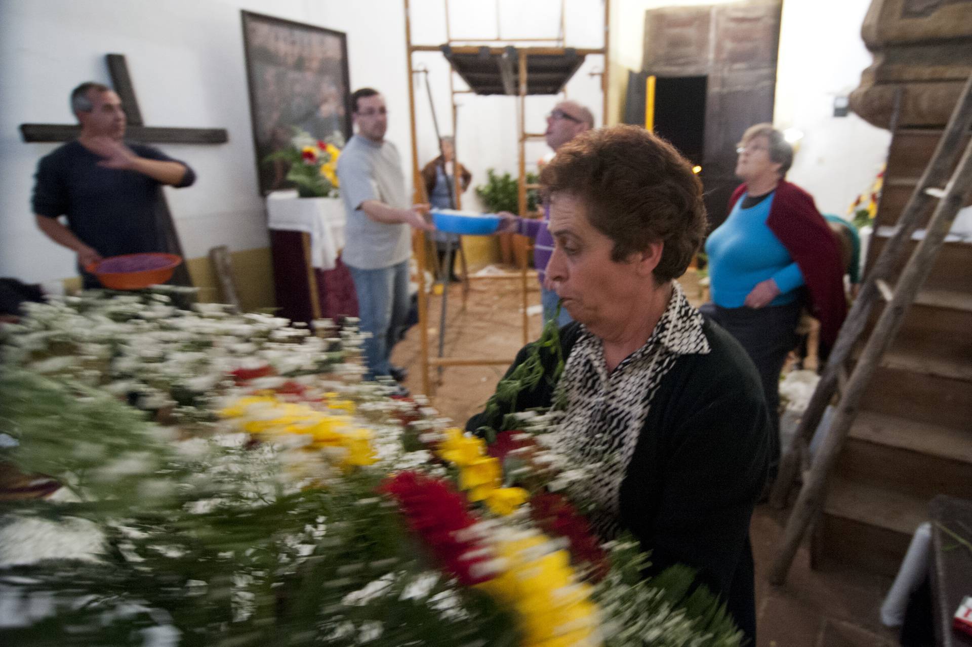 E como se faz a recolha das flores?, quisemos saber. Fernanda Grácio explicou que essa recolha é feita por si, pelo filho, pelo irmão, pela cunhada, pelas vizinhas que estiverem disponíveis e “pelo meu neto de 5 anos, que já gosta e já pergunta quando é que vamos enfeitar a capela”, conta, entre risos. Voltando às flores, “se forem flores campestres, vamos para o campo apanhar o que precisamos e, muitas vezes, o que houver. Se forem flores de jardim, temos que ir pedindo às pessoas e toda a gente colabora”.