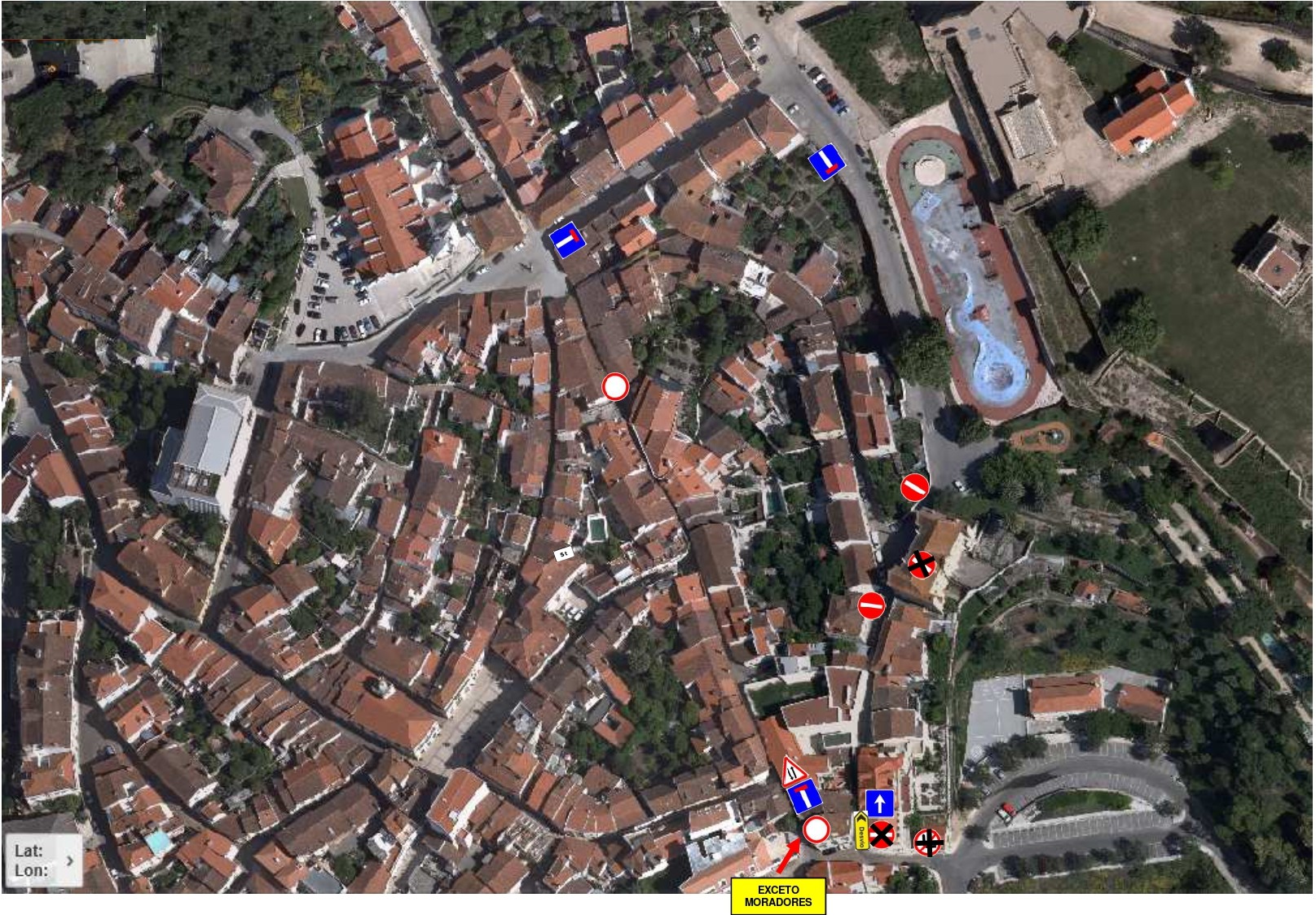 Nesse período apenas poderão transitar na Rua Grande, nos dois sentidos do trânsito, os moradores da própria Rua Grande, da Rua do Arcediago, do Beco do Forno, da Rua Prof. Manuel Constâncio, da Travessa da Palma e do Beco dos Besteiros, com entradas e saídas pela Rua dos Quinchosos, conforme plano de sinalização.