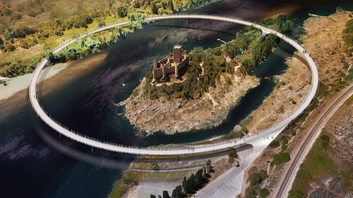 Tomás Reis, mestre em Arquitetura e Design Urbano pela Faculdade de Arquitetura da Universidade de Lisboa refere que o desenvolvimento deste projeto se insere na comemoração dos 850 anos do castelo. A proposta cria uma nova estrutura de acesso ao castelo, com um percurso pedonal circular que envolve a ilha fluvial e as margens do rio Tejo conforme se pode ver pela figura anexa.
