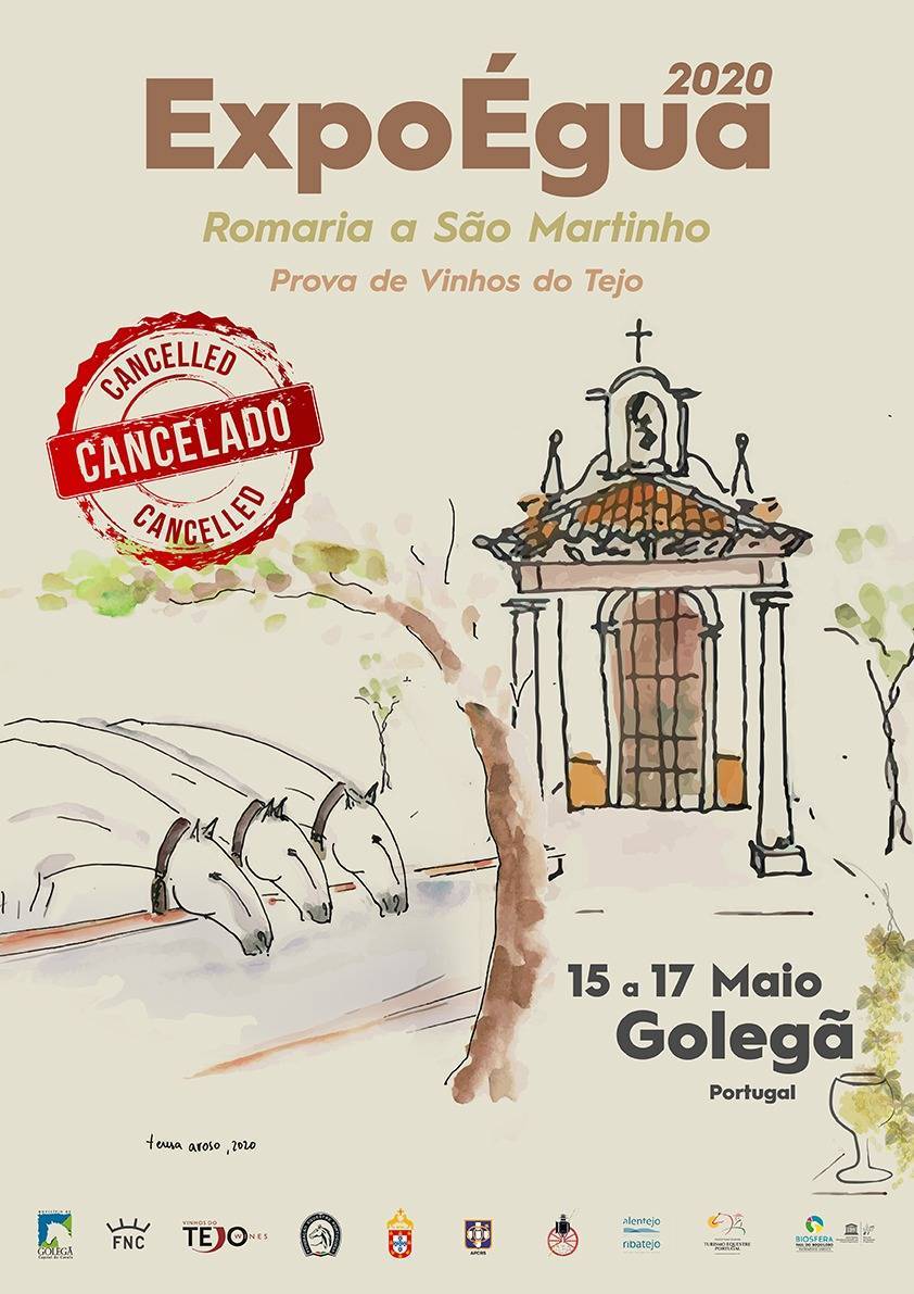 Em comunicado, a Câmara Municipal da Golegã (no distrito de Santarém) afirma que, além da ExpoÉgua, são ainda canceladas a Romaria a São Martinho e a Prova de Vinhos do Tejo 2020, agendadas para a mesma altura.