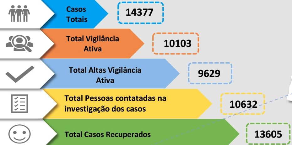 O total de pessoas recuperadas da COVID-19 é de para 13 605 e o número de óbitos passou a ser de 391. Com esta última atualização o número de casos ativos no Médio Tejo é neste domingo de 381 localizados em Abrantes (34), Alcanena (38), Constância (4), Entroncamento (79), Ferreira do Zêzere (5), Mação (16), Ourém (66), Sardoal (6), Tomar (45), Torres Novas (71) e Vila Nova da Barquinha (16).
