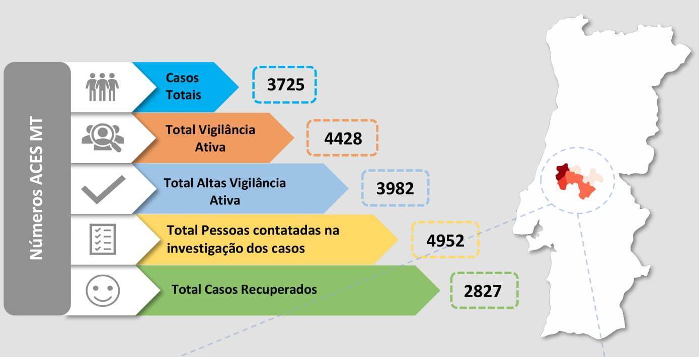 O Médio Tejo tem esta quarta-feira uma atualização nos casos recuperados no seu território. De acordo com o relatório epidemiológico da unidade de Saúde Pública do Agrupamento de Centros de Saúde há mais 3689 pessoas que deixaram de fazer parte dos casos ativos de infetados com o coronavírus.