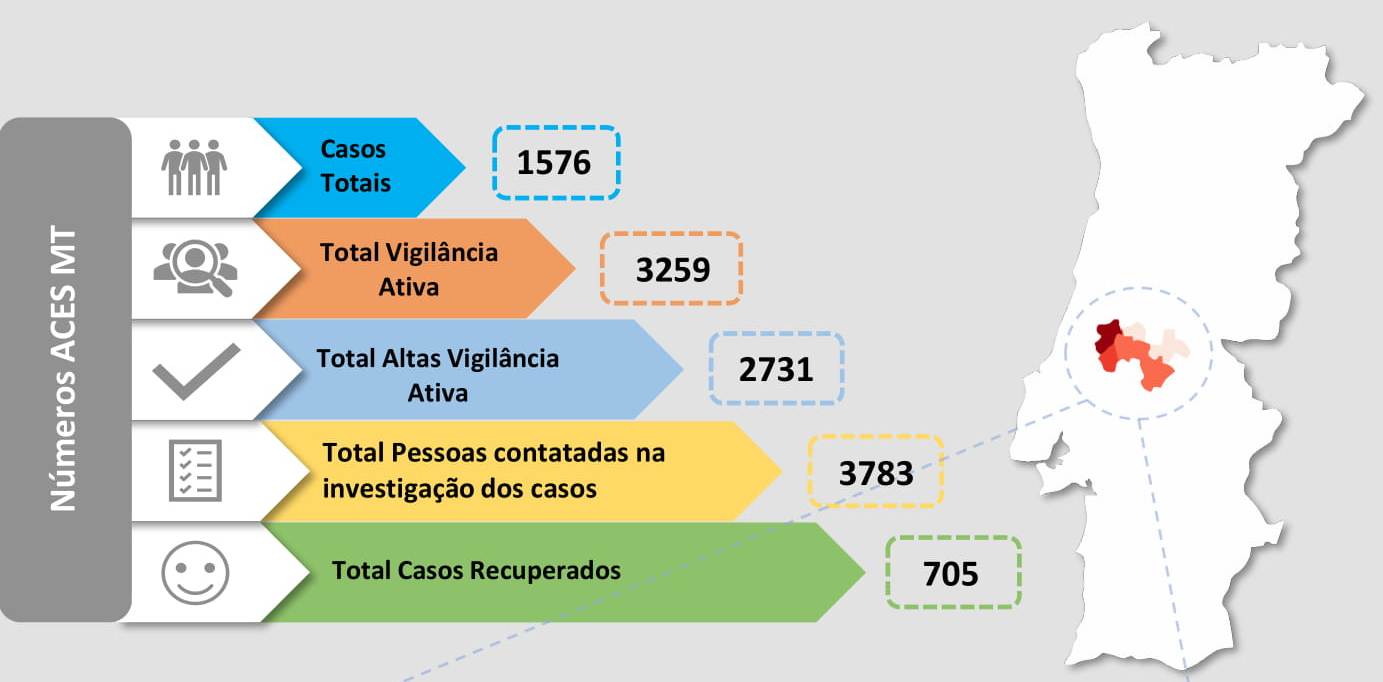 O Médio Tejo soma esta segunda-feira mais 53 novos casos de pessoas infetadas com o coronavírus o que soma um total acumulado de 1576 casos desde que começou a pandemia.