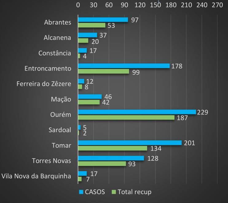 No que diz respeito aos recuperados, de acordo com a saúde pública do Médio Tejo são 649 as pessoas que já tiveram alta depois de terem estado infetadas com o coronavírus.