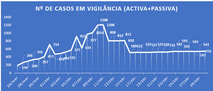 No que diz respeito às vigilâncias ativas há também a registar um aumento de mais nove pessoas que vão ter de ficar em isolamento profilático, por terem tido contacto direto com pessoas que testaram positivo. No Médio Tejo o número de pessoas que estiveram ou estão neste processo de isolamento chegou aos 552.