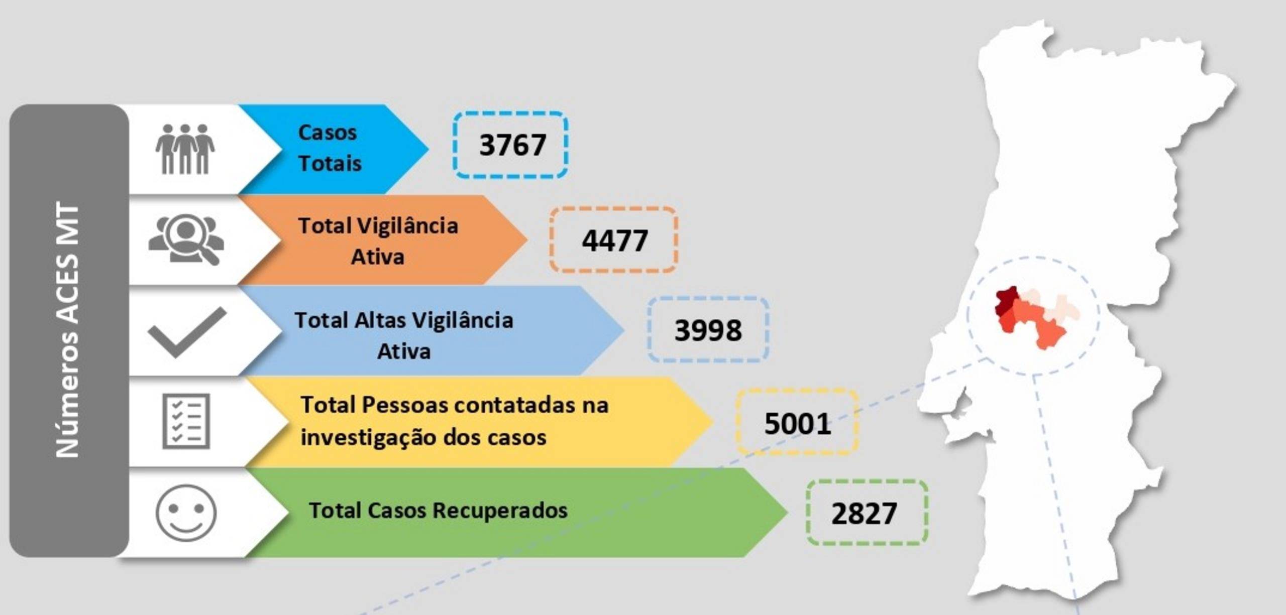 O número de recuperados, de acordo com o relatório da autoridade de saúde pública é de 2827 pessoas que já recuperaram da infeção provocada pelo SARS-Cov-2.