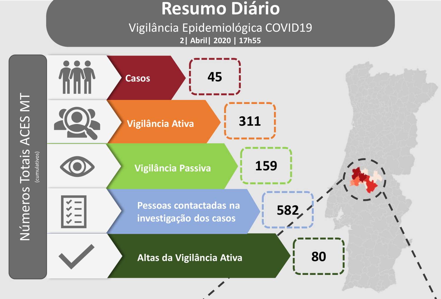 De referir que há a registar dois óbitos (Tomar e Alcanena) desde o início da pandemia.