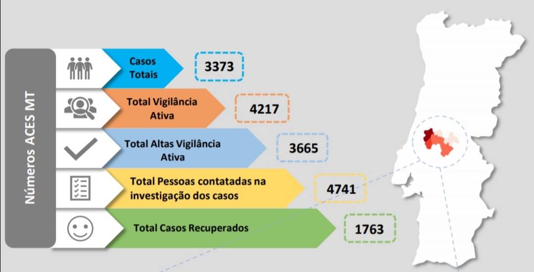 ACES Médio Tejo Médio Tejo com 47 novos casos e 594 pessoas em vigilância ativa