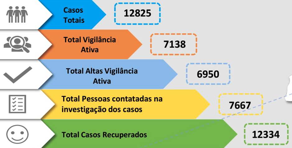 De acordo com o relatório epidemiológico desta segunda-feira tanto o número de óbitos, 375, como o número de recuperados, 12 334, não tiveram alteração em relação ao dia de ontem.