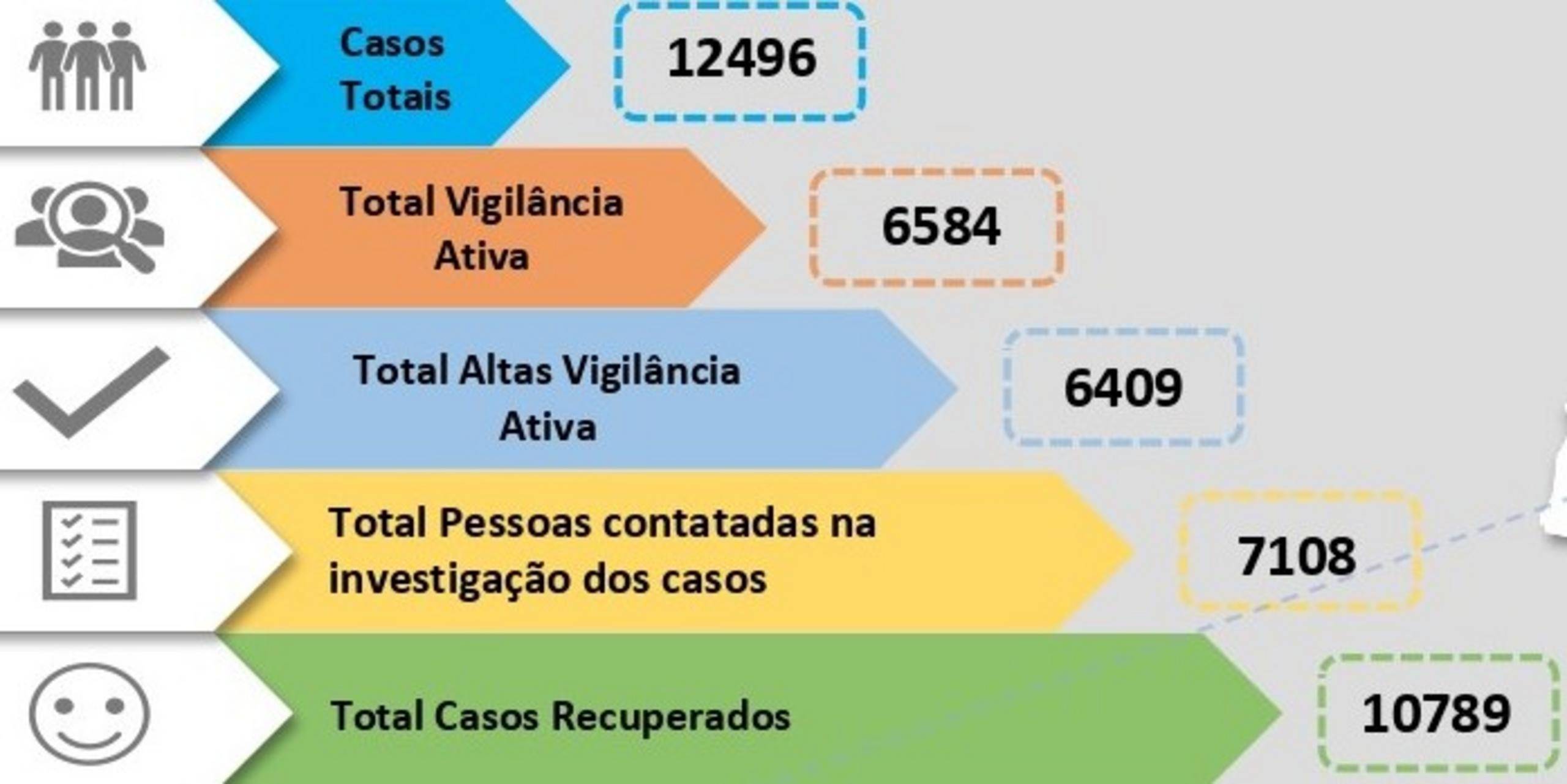 O número de recuperados não sofreu qualquer alteração, mantendo-se nos 10.789. Também o número de óbitos continua a ser o mesmo do dia anterior, ou seja, 344.