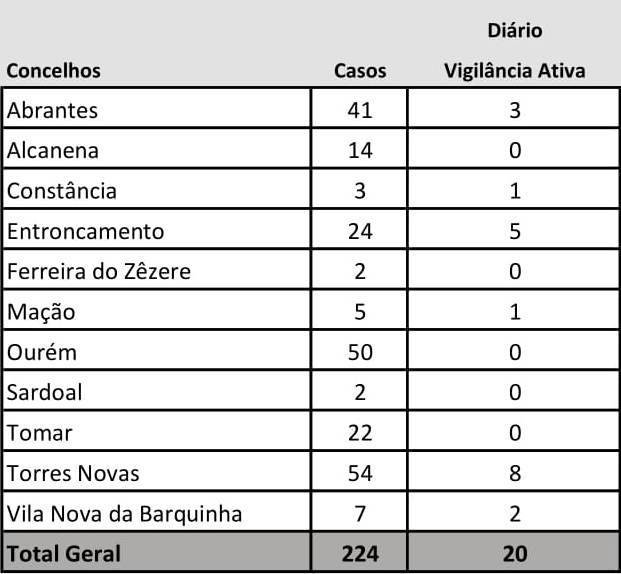 Há ainda a registar no Médio Tejo 14 óbitos, ressalvando a autoridade regional de saúde que não se sabendo a causa das mortes sabe-se que os testes “post mortem” acusaram a presença do coronavírus.