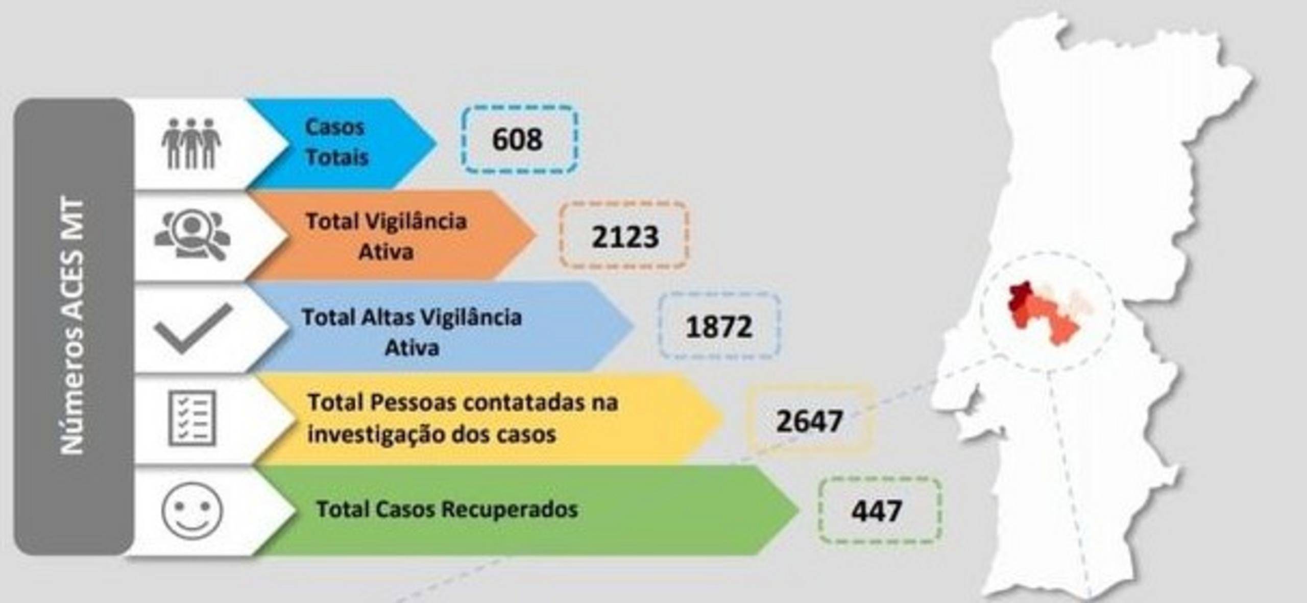 Há também mais 12 pessoas a entrar em vigilância ativa, ou seja, pessoas que estão em confinamento por terem contactado diretamente com doentes COVID-19, perfazendo um total de 272 pessoas que se encontram nesta situação no território do ACES Médio Tejo. No entanto, saiu desta situação uma pessoa no concelho de Abrantes, 3 em Entroncamento e 7 em Sardoal. Constância continua a ser o único concelho da Saúde Pública do Médio Tejo que não tem qualquer pessoa em vigilância ativa.