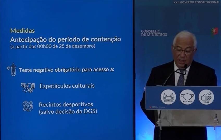 Desde 27 de novembro já era obrigatória a apresentação de um teste com resultado negativo ao coronavírus à entrada dos recintos desportivos ao ar livre com capacidade acima de 5.000 espetadores e superior a 1.000 em recinto fechado, independentemente do estado vacinal.