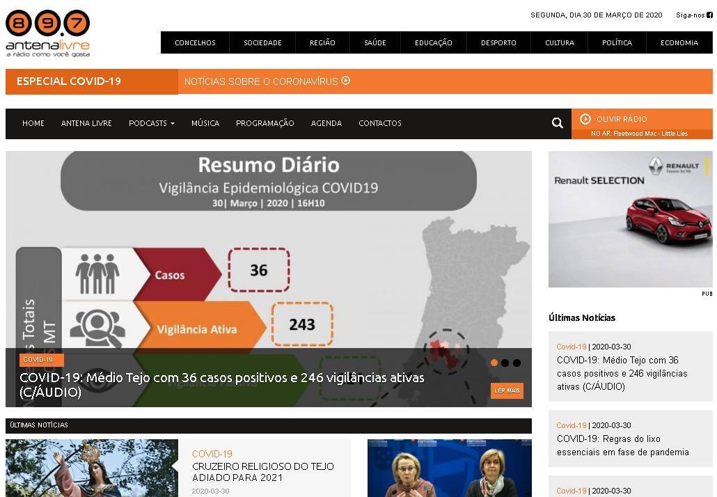Outra novidade é a criação de um menu especial dedicado à COVID-19. Neste local tem uma ligação direta ao site da Direção-Geral de Saúde onde são disponibilizados on-line os dados do país em tempo real e de acordo com os boletins epidemiológicos que são disponibilizados diariamente. É nesse separador que também vai poder encontrar todas as notícias da Antena Livre relativas à pandemia, sejam as regionais ou as nacionais.