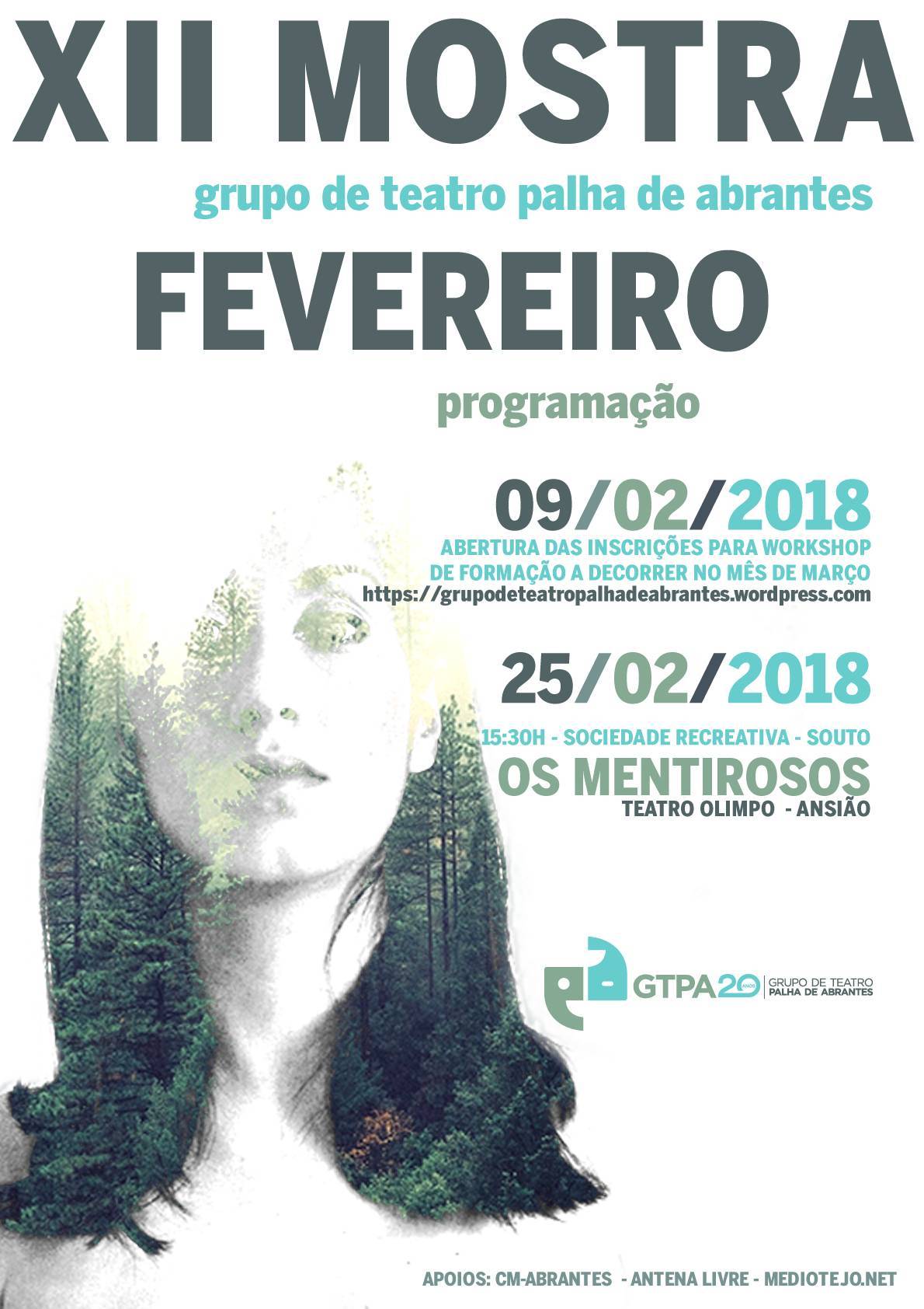 O dia 9 de fevereiro marca a abertura das inscrições para o workshop de formação em teatro a decorrer no mês de março, através do email grupodeteatropalhadeabrantes.wordpress.com.