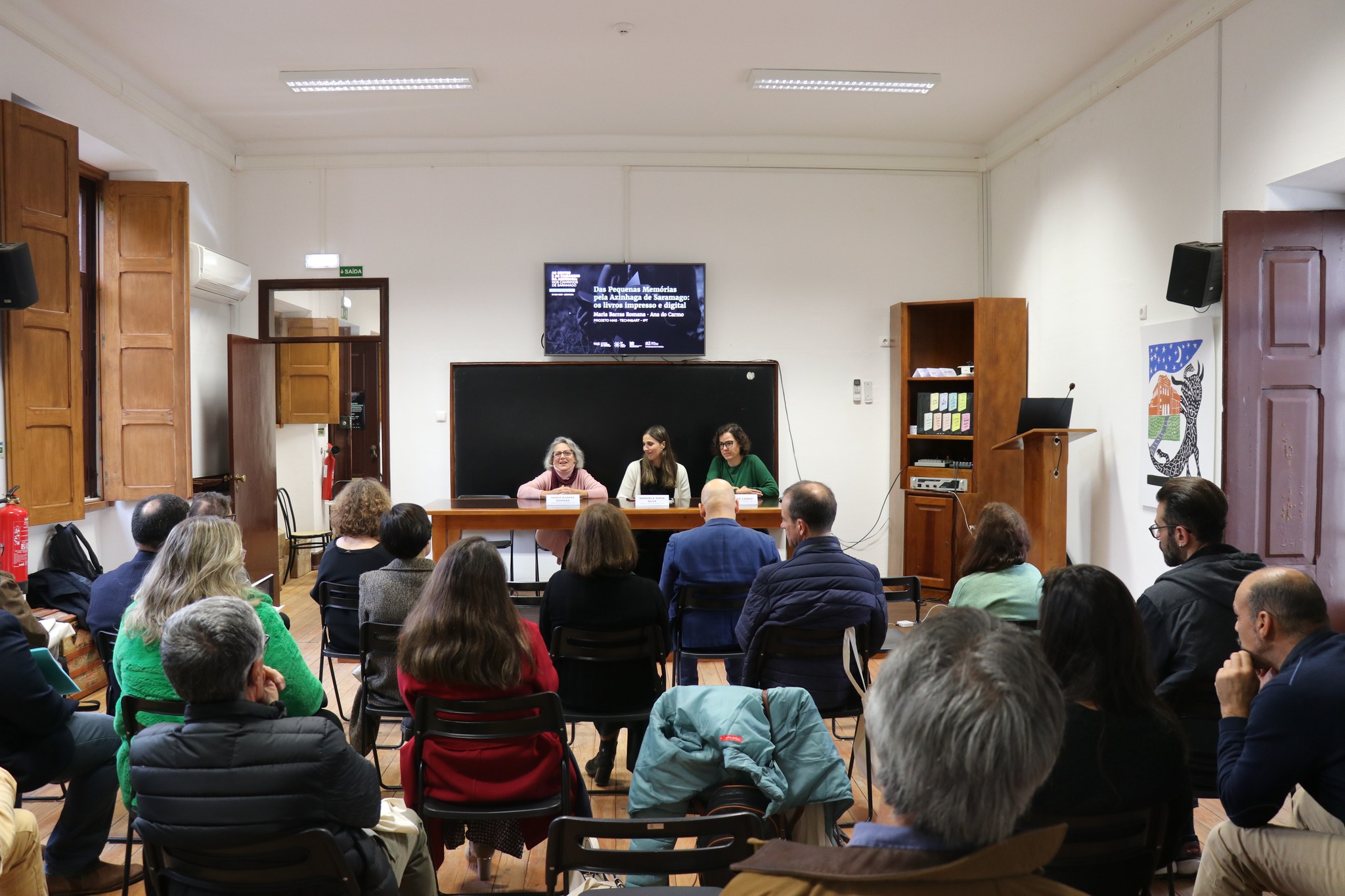Para além das quatro conferências subordinadas à obra As Pequenas Memórias de Saramago, a sessão contou com a apresentação do mencionado livro, assim como a antestreia das curtas-metragens. Foi uma sessão bastante participada, sobretudo com pessoas da aldeia, que aplaudiram os pequenos documentários, e, como referiu Ana Matos, neta do único Nobel literário português, “foi um dia feliz” para ela e com certeza para a Azinhaga.