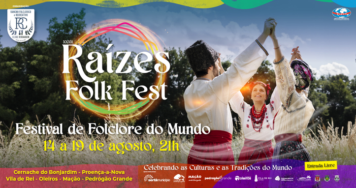 De 14 a 19 de agosto os municípios de Sertã, Mação, Oleiros, Pedrógão Grande, Proença-a-Nova e Vila de Rei recebem a iniciativa “Raízes Folk Fest – Festival de Folclore do Mundo”.