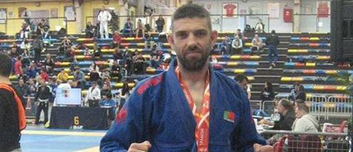 Bruno Alves, 34 anos, master1 menos 76kg, treina Jiu-Jitsu na Secção de Desportos de Combate do Sporting Clube Barquinhense da Gracie Lisboa.
