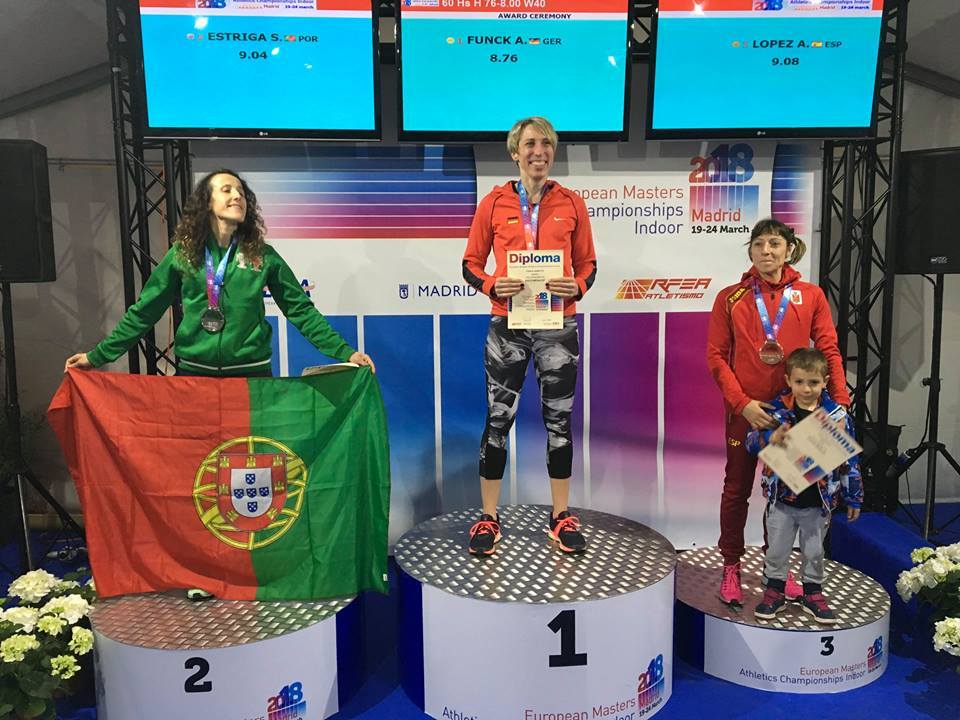 Susana Estriga alcançou, no sábado, a segunda posição na final dos 60m Barreiras (escalão W40), do Campeonato da Europa de Veteranos, em pista coberta, que decorreu em Madrid.
