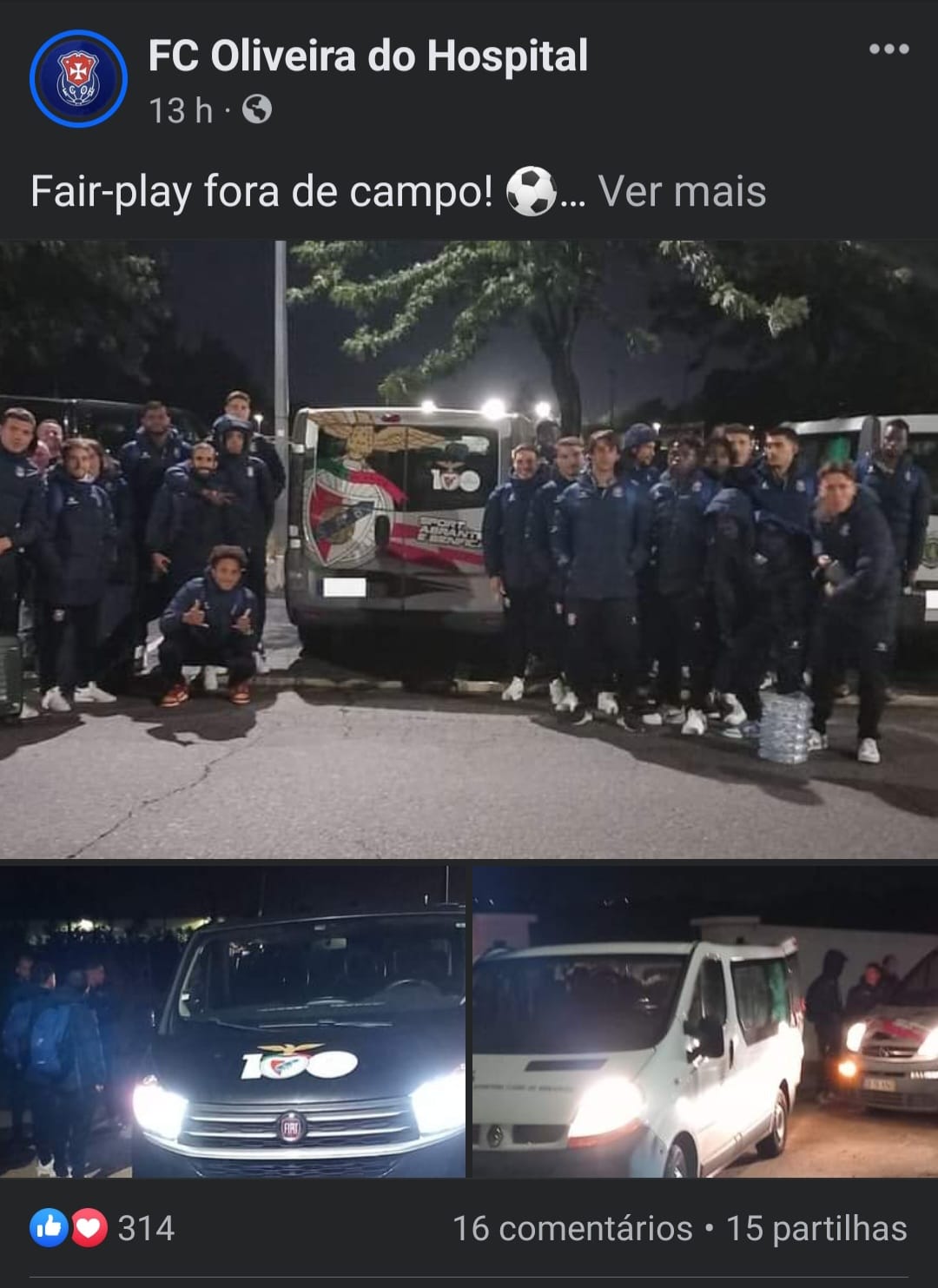 Na rede social Facebook, o FC Oliveira do Hospital tornou público o agradecimento “ao Sporting Clube de Abrantes e ao Sport Abrantes e Benfica pelo facto de se terem disponibilizado para transportar a nossa equipa de futebol, na noite de sábado, depois de o nosso autocarro ter sofrido uma avaria e ter ficado impossibilitado de seguir viagem. Este é o espírito do futebol!”
